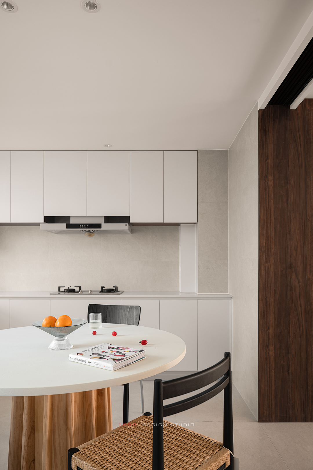 把餐厅装入变大的厨房,餐厨功能一体化是顺应当下使用的习惯与场景的,四扇联动的玻璃门让围绕餐厨的过程和结果可以拥有更专注的区域来展开,收纳和操作空间倍增,用餐之地也变得近在咫尺。