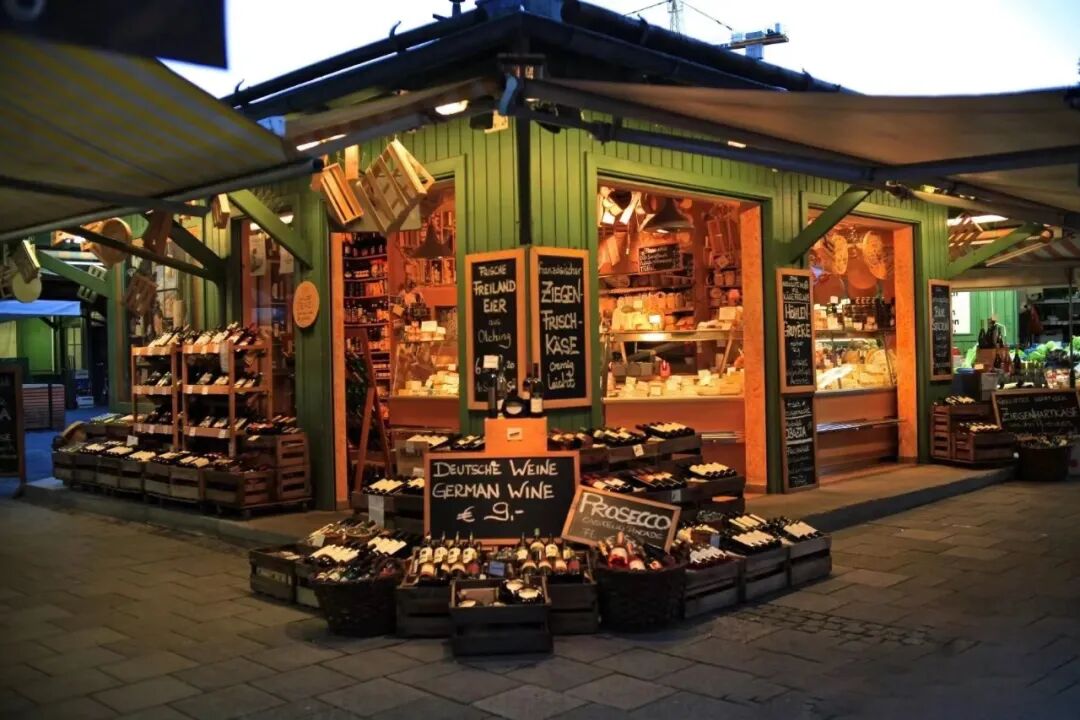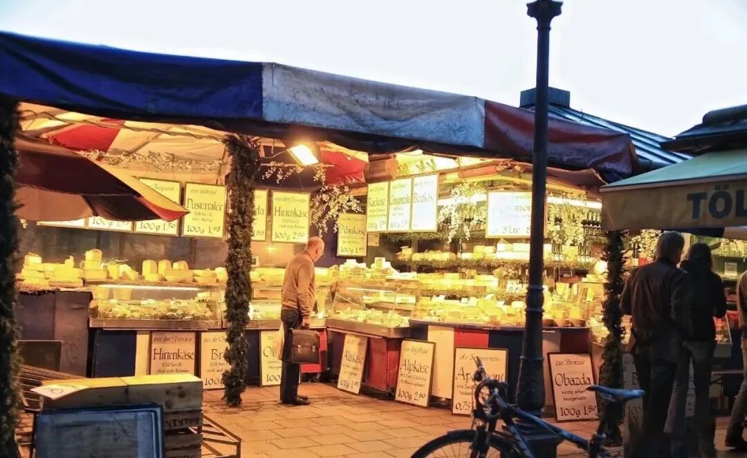 慕尼黑 Viktualienmarkt又名谷物市场或粮食市场,也是慕尼黑最受欢迎的。市场就在玛丽恩广场的旁边,已经由最初的农民集市,发展成为一个受欢迎的美食市场。市场占地22.000m2, 140个店铺出售鲜花、进口水果、猎物、家禽、调味品、奶酪、鱼、果汁等。在慕尼黑其他任何地方都找不到如此多种类的新鲜、精美的食物。