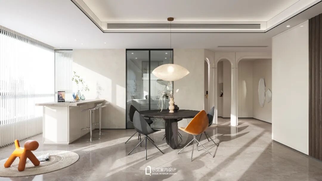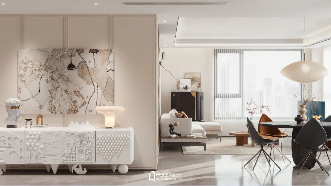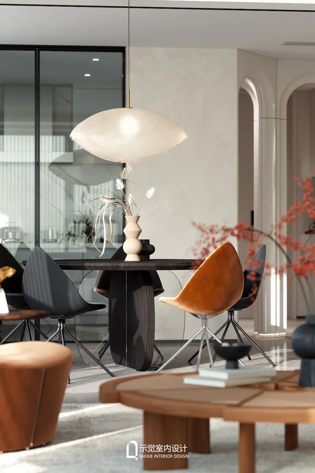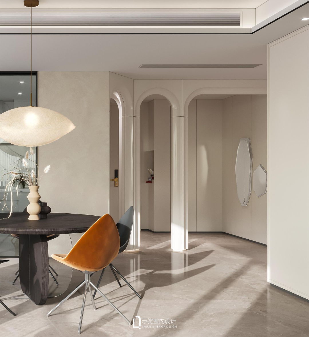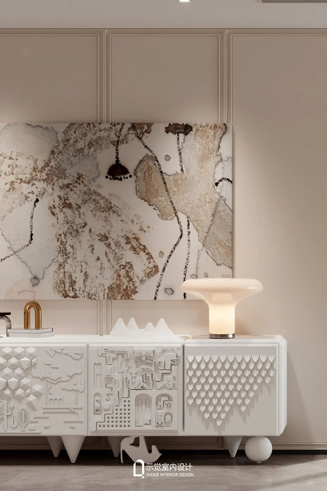 作品集2023-07-06 示觉设计 | 250 ㎡ 中粮瑞虹海景壹号,一眼就沦陷的时尚艺术大宅 屋是墙壁与梁所组合 家是爱与梦想所构成 ——— 泰戈尔 // 设计理念 原始平面图 平面布局图 设计前 本案,位于中粮瑞虹·海景壹号,250㎡精装交付大平层,对于新家的期待,屋主希望是通透大方、耐看、有质感、有细节,且有一定的空间松弛度。 设计师结合需求定位现代法式的设计风格,结构上,通过合理的生活活动动线,与户外光线构成流畅的整体关系,更丰富的层次与质感则通过材质与纹理凸显出来。 现代简约的法式线条,搭配个性手工质感的深胡桃木雕刻,肌理感艺术漆的留白墙面,多种材质的碰撞,在空间中寻求美学平衡,低饱和度的配色,加上不同元素的运用,空间建立起韵律,体现了舒适悠闲之感。 // 玄关 原玄关储物间拆除后,用弧形拱形元素分隔出独立的玄关空间,设计柔美有趣味,同时又给空间增加些许设计感。 现代法式拱门作为框景使客厅半露,搭配BD BARCELONA玄关柜,无论是从外部结构上还是内部的装饰上,它都通过灵活的空间动线与室内外光线构成一种流畅的关系,艺术又高级。 cabinet tout va bien by antoine et manue 充满艺术和幻想的TOUT VA BIEN 餐边柜来源于西班牙BD BARCELONA DESIGN,由Antoine + Manuel设计,柜子是应用艺术、象形文字语言、当代图形、幻想和乐观主义的趣味混合。 // 餐厅 半开放式厨餐厅,更加注重互动与交流。南阳台打通后,一半作为吧台,可边吃早餐边看风景(楼下和平公园),另一半则作为儿童活动区。 吧台区,算是一个非常巧妙的小细节处理,既在视觉上做到隔而不断,又承担起连接空间的作用,避免了生活动线太过生硬。 整体浅淡的主色调,形成一种微妙的分离感,局部用橘色系点缀,赋予了空间生机与活力。简约的北欧风情水滴餐椅营造了轻松悠闲的就餐氛围。 餐厅灯来源于Catellani & Smith PostKrisi系列,造型多变,玻璃纤维和金箔创新性的利用让灯也能成为一件艺术品。半透明的纤维像晶莹剔透的燕窝,光线从裂缝中溢出来;顺着金箔纹理的光仿佛具有流动感,不开灯时也能熠熠生辉。 // 客厅 餐边柜借用部分主卧衣帽间空间,上半深胡桃木雕刻柜用于储物,下半放至壁炉,凸显舒适温暖的氛围感。 活动电视置于靠窗的角落,与轻盈的转角沙发,小巧精致的Cassina茶几,单人椅等围合成轻松的社交空间。LUCEPLAN 的长臂灯作为打破大空间的点睛之笔,十分具有张力和戏剧性。 客厅软装家居,除了最大化减轻视觉体量之外,也赋予了屋主更加自由的生活形态,以应对不同的场景需求。 空间的塑造与情感的表达息息相关,每个空间都在材质上有着微妙变化,但也同时在视觉上保持整体调性的一致,时间在这里积累下来的宁静,更容易成长为自身的底蕴与底气。 项目情况| 项目地址丨Address:上海虹口 面积丨Area:250㎡ 设计单位丨Company:上海示觉室内设计事务所 服务方式丨Service:硬装+软装全案设计服务,主材+软装代购及落地服务 END 本文来自微信公众号“上海示觉室内设计事务所”(ID:SHIJUEDESIGN-1)。大作社经授权转载,该文观点仅代表作者本人,大作社平台仅提供信息存储空间服务。 TAGS: 室内设计空间艺术设计 相关文章Kleoniki Andr…这是大王Day.281获奖作品《2020最佳图书…精选头像|搞怪来袭!安东尼奥·布埃诺 作品配色清新梦幻的场景插画,充…美国Jennifer Mc…【小鹏设计】设计小改/动力…【首发】地点空间丨打破空间…谢商家不坑之恩!只骗有钱人…