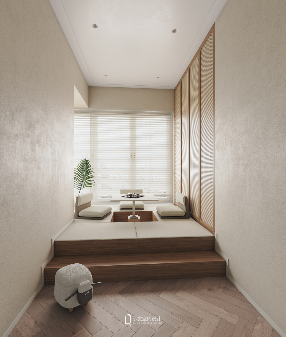 榻榻米房间包含一个升降桌,升起时可当做桌游,棋牌等活动功能实用。平时家里需要增加客房时,桌板下沉摇身一变一个床榻客房。