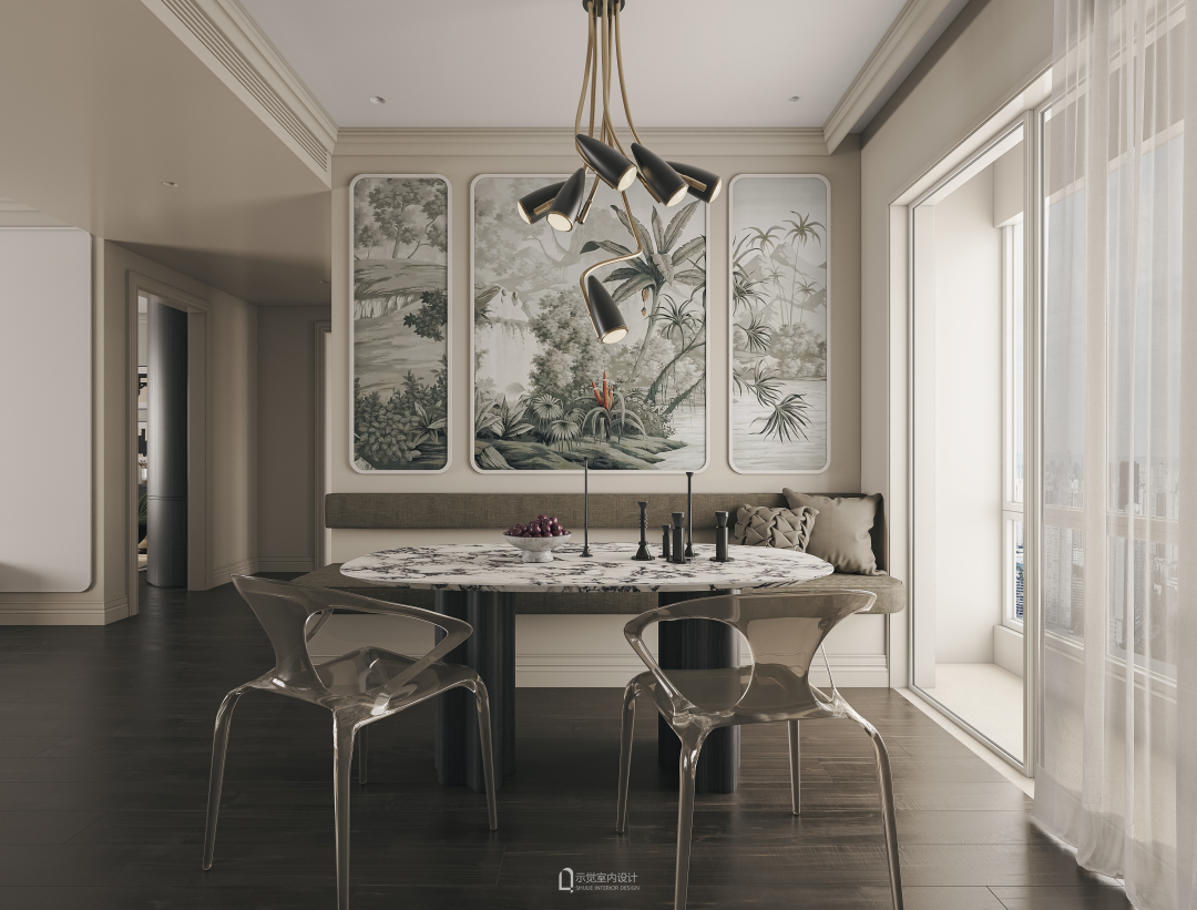 手绘墙纸,卡座,丛林的野心结合法式的优雅,碰撞出独特的品位。