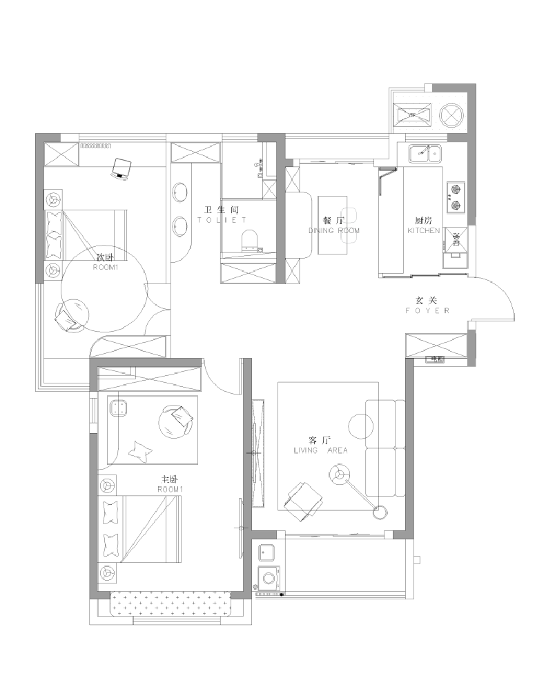 // 两居室+一书房·现代轻奢