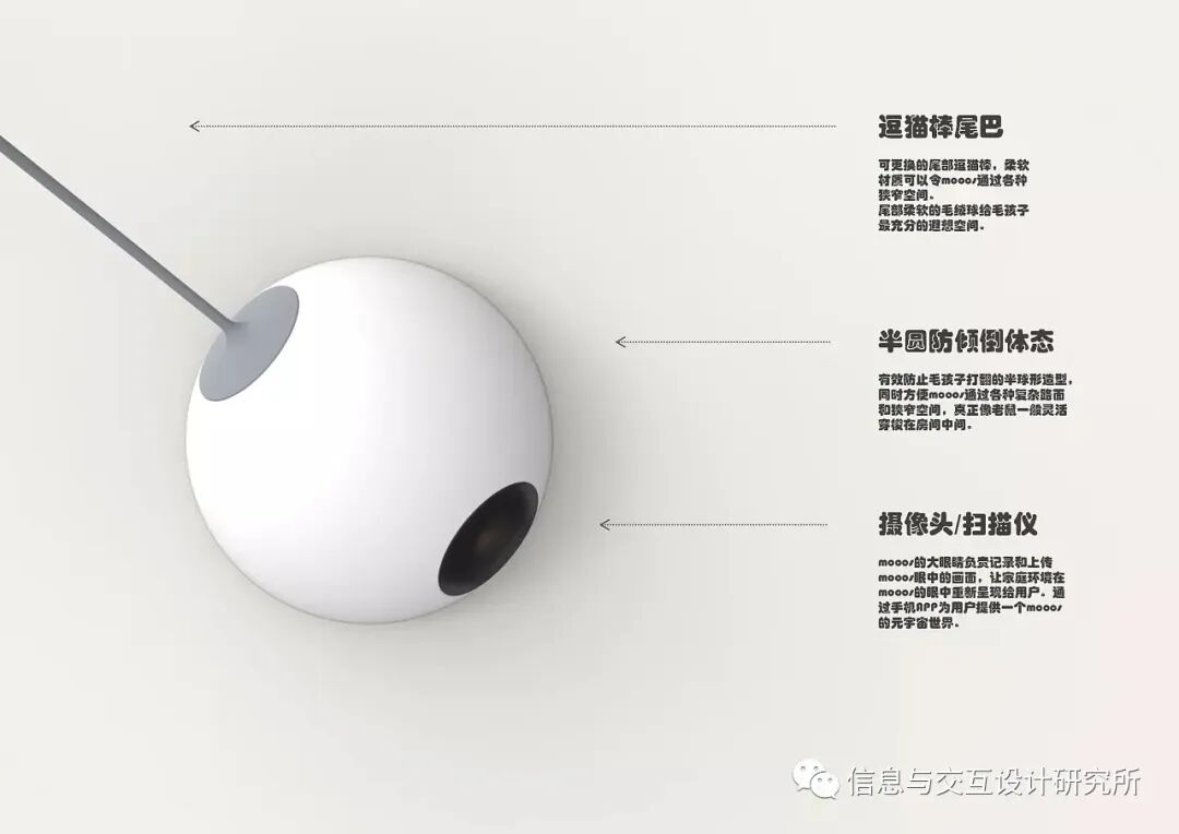 这是一款能够陪伴宠物玩耍并且能够通过摄像头将“老鼠的视角”转换成为元宇宙手机游戏的互动型宠物陪伴机器人。机器人通过头部的摄像头和红外扫描仪将拍摄的画面通过WIFI实时导入到用户的手机终端中。手机终端将机器人拍摄的画面实时处理成冒险游戏的界面。将主人最熟悉的环境换成最独特的视角,并辅助以种种游戏设定。吸引家中猫咪和老鼠mooos一起完成一次奇幻的冒险。