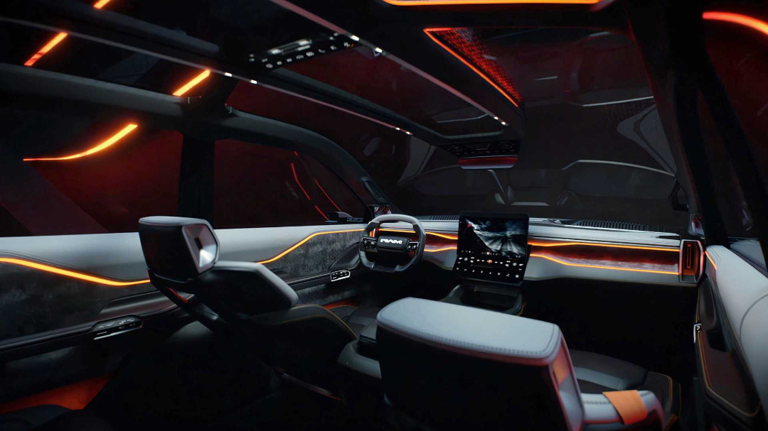 公羊纯电皮卡概念车RAM 1500 Revolution在刚开幕的2023CES上首发,展示了公羊品牌未来的电气化战略。