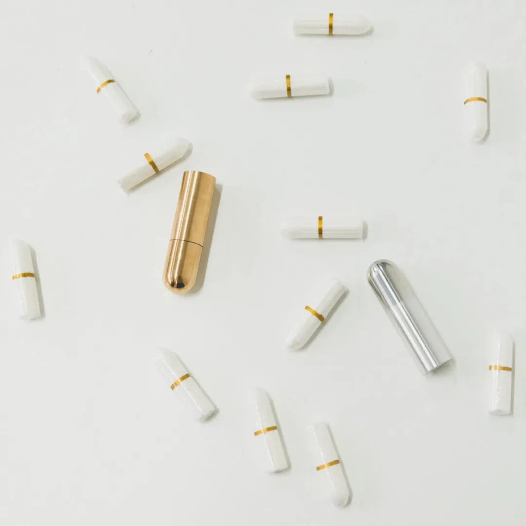 设计师 Katarina Hornwall 创造了一款形状像卫生棉条的实心黄铜容器,里面可以放入卫生棉条,而且可以像普通项链一样佩戴。