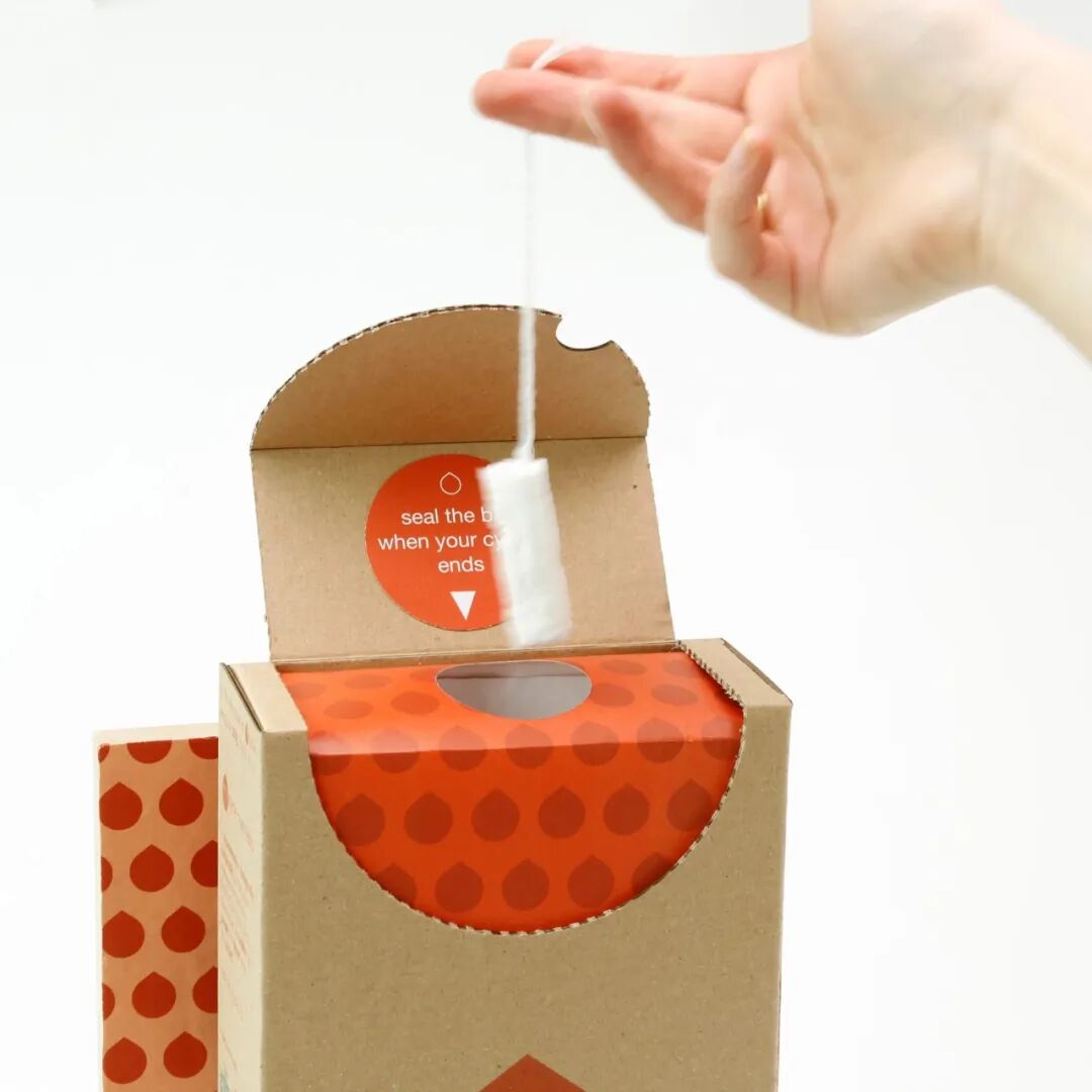 Kaye Toland 也是在中央圣马丁艺术与设计学院学习期间创造了一款卫生棉条配送系统,其中纸板箱兼作垃圾桶,可将卫生用品变成堆肥