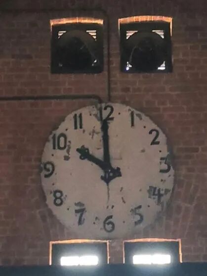位于建筑北侧的楼梯,由一块块厚重石材叠加而成,沉重的石材踏步悬挑1米有余,经过岁月的洗礼仍在正常使用。楼梯间的休息平台铺设六边形地砖,据博物馆工作人员介绍,也已有上百年历史。此外,阁楼层的钟表(图10)、窗户、室内房间木门等,也都保持着胶海关办公楼20世纪初期落成时的风格样貌。
