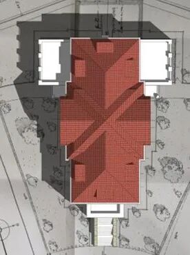 建筑顶部则更加精彩,阁楼层巨大的曼莎屋顶的屋脊线十字交叉,交叉点位置设计了高出屋脊线2.5米的正四棱锥形屋盖,也使得屋顶平面呈拉丁十字形(图7)。海关大厅位置是建筑核心,空间上呈现为边长17米的正方体,建筑外立面的比例关系也体现了西方古典建筑的黄金分割比例(图8)。阁楼层木结构样式为双檩条屋顶(doppelt stehender Pfettendach),是德国传统木结构屋顶很常见的一种檩条屋顶(Pfettendach)设计样式,大屋顶和坡屋面角度通常介于30度至45度(图9)。