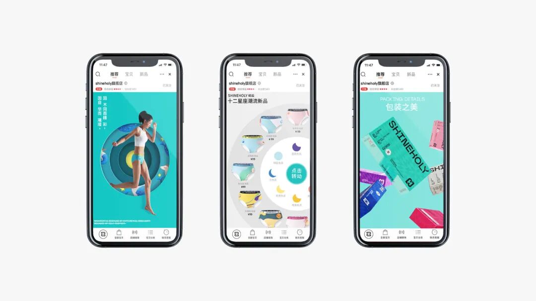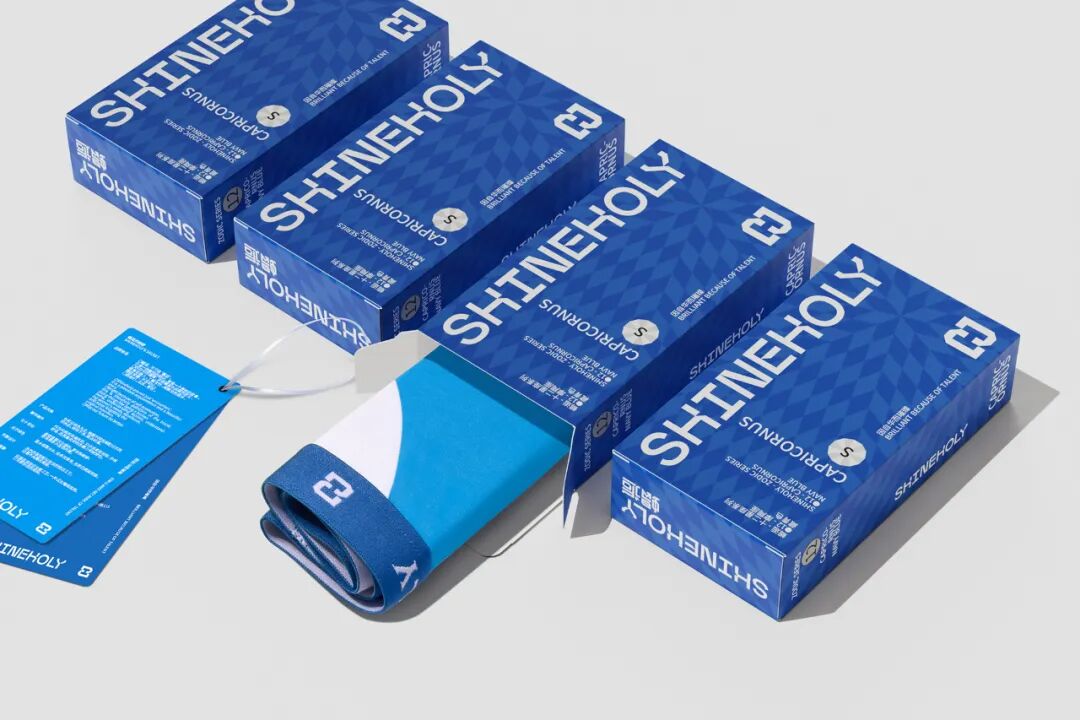在十二星座系列中,我们通过代表不同星座的性格色彩来进行包装梳理。在内裤上原创了十二星座的插图,在外包装上通过色彩去区别,并且从solgan“因自华而璀璨”中汲取灵感,创造了璀璨星光的图形,应用在底纹上。