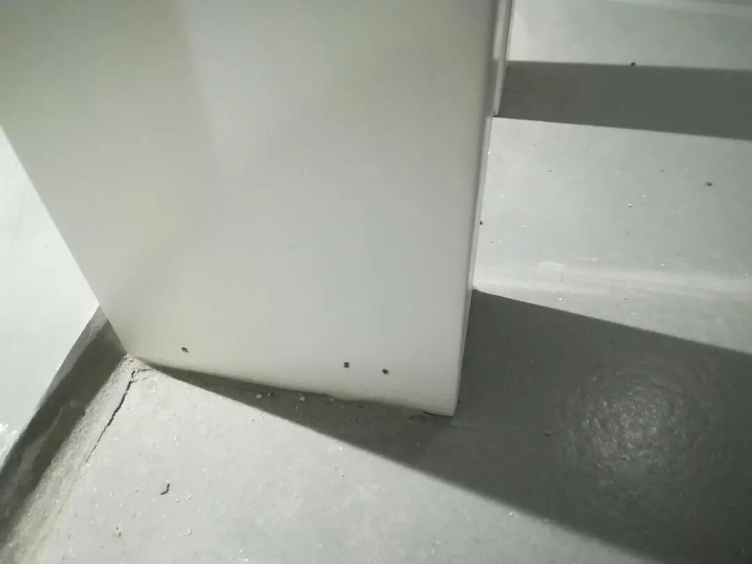 节点分析:天花交接处直接斜打枪钉(图片中钉眼都没有修补),与地面交界处,地面先固定一个小木块预埋,栅格直接套在木块上,通过枪钉直接将木栅格固定在小木块上。