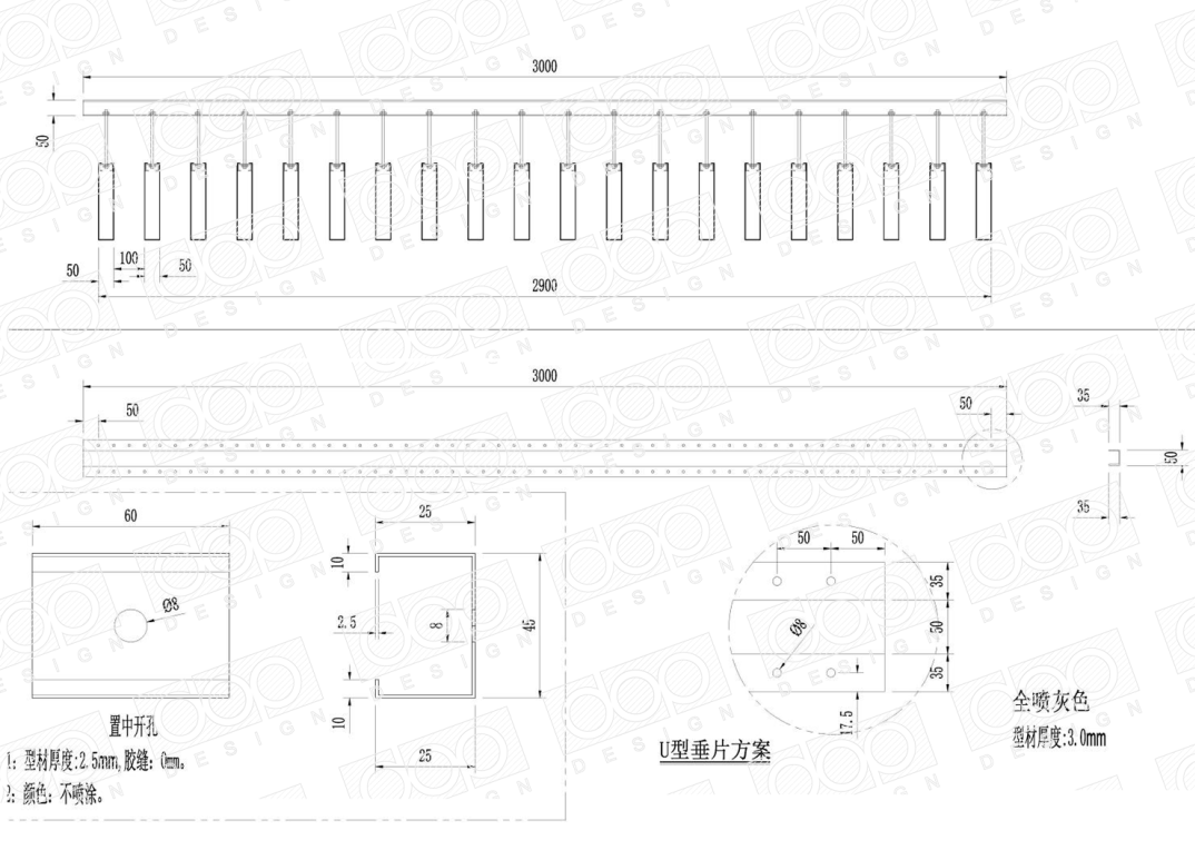 如上展示的铝方通节点,有几种不同的做法,相应的完成面尺寸也有所不同。
