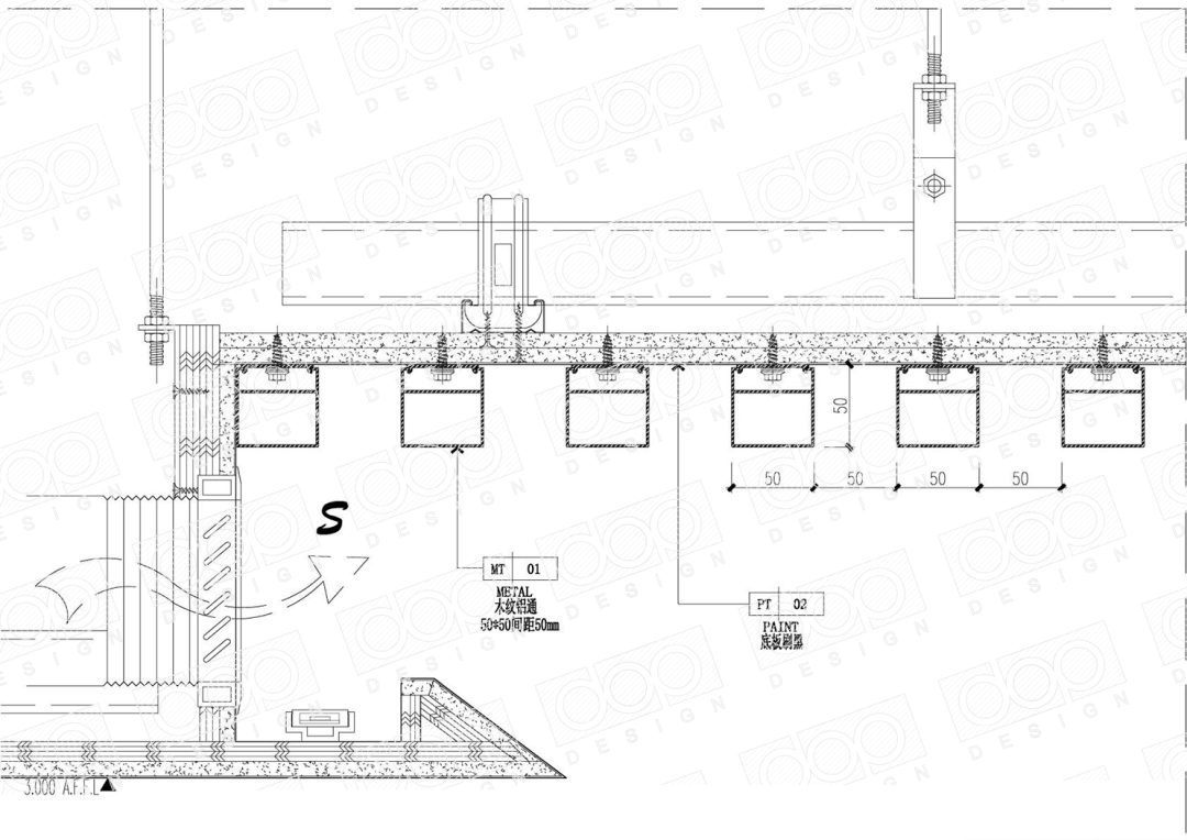 常见的格栅做法多用于吊顶和墙面以及隔断,对应节点做法也有所不同。