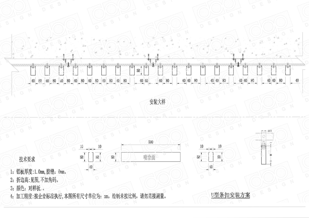 上图是构件通过螺丝先固定到平顶上,铝通通过小的卡口直接扣上去整体平整美观看不到缝隙和连接件。