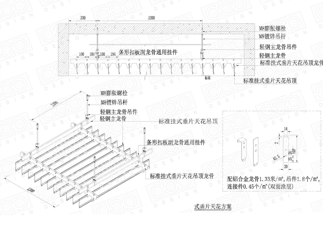 ② 吊杆+吊件+主龙骨+垂帘龙骨+滴水垂帘