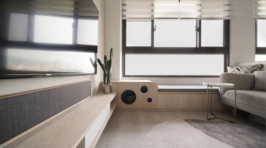 以隐蔽的宠物居住空间为例:规划出专属于宠物的休息区,给它们营造一个属于自己的空间。并非每一个宠物都能按照一种设计方式来实现,在整体规划上,还需要根据自己家的喵君和汪君的生活习性进行区分设计。