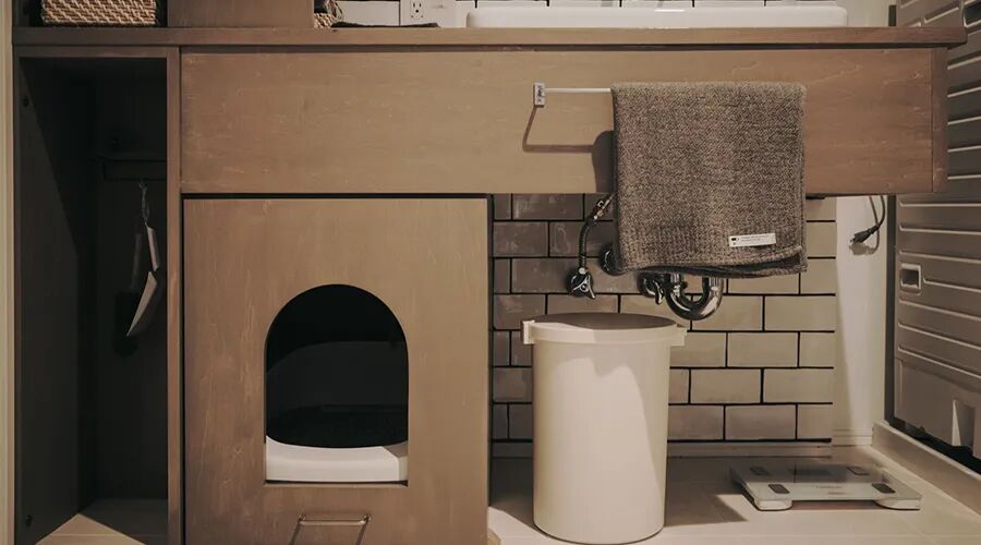 作为铲屎官,单独给宠物设置厕所占据空间面积大,想要让自己生活的舒适有设计感同时保证宠物也可以自由舒适干净,在选择猫砂盆时候可以是内嵌到柜体内,也可以是别致的造型作为空间装饰。