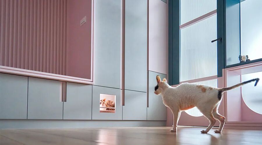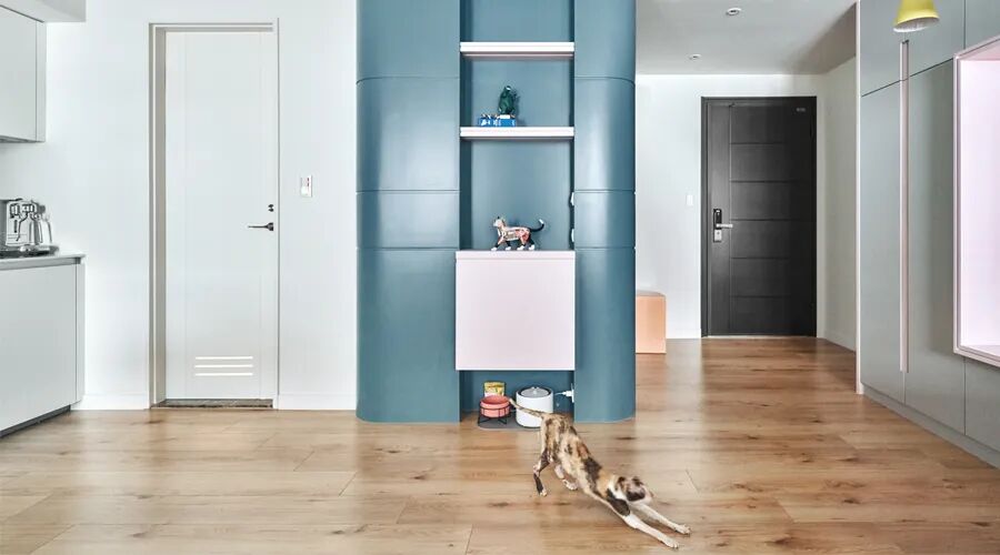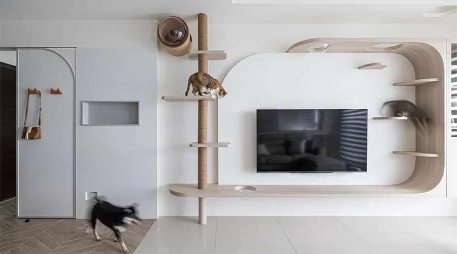 在室内设计中,不仅要考虑人的使用属性舒适,也要了解动物的生活习性,才能在生活中和谐共处,大量占用人的生活空间,有时候会干扰人的正常生活,为了避免带来的甜蜜烦恼,何不将宠物与住宅融为一体?