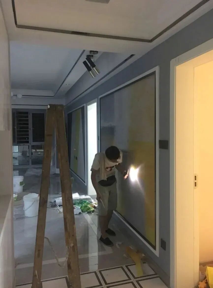 刮腻子、打磨,之后刷墙漆或者贴墙纸墙布。一般油漆验收设计师不用去,但擦色漆时,设计师和客户必须现场确认。