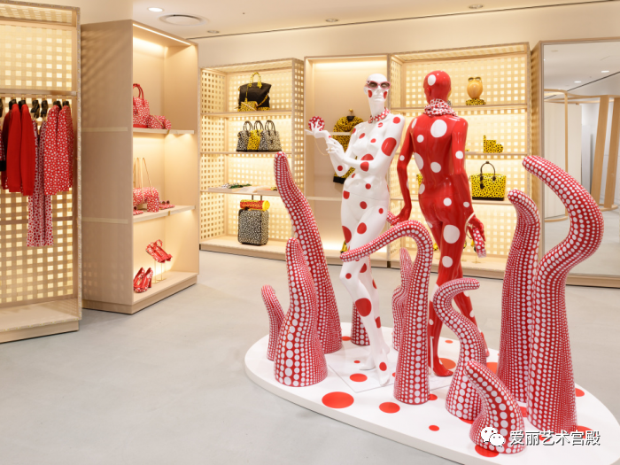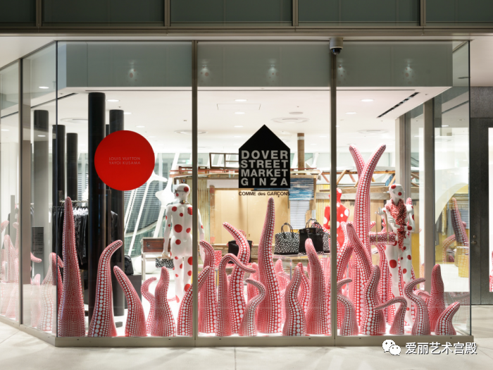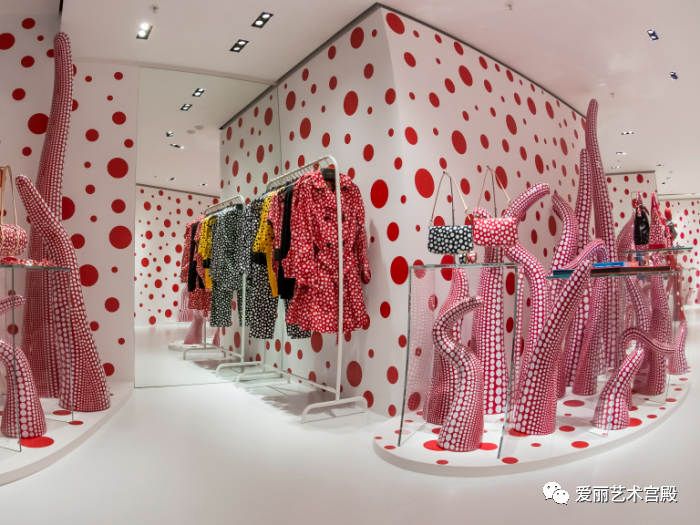 在这样的创作条件下,草间弥生愈把重复、无限和圆点的表达推到极致。2012年,草间弥生与LV牵手合作,将波点融入到产品中。LV大张旗鼓地包下了英国著名百货公司Selfridges位于伦敦牛津街门店的24个橱窗,打造了两支散发着“诡异”气息的宣传短片。