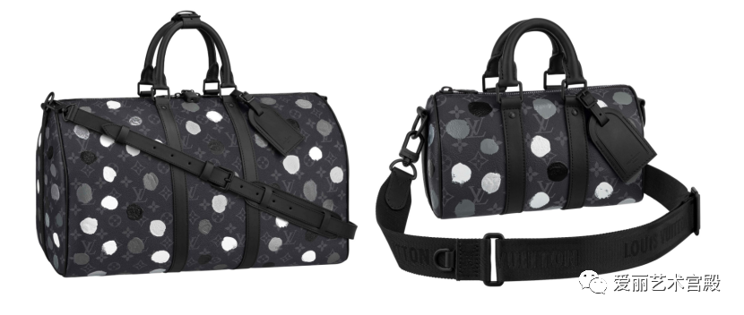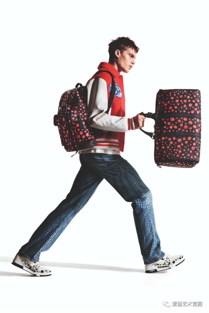 另外还有硬面旅行箱、Mini Soft Trunk 等单品与 LOUIS VUITTON Monogram 重叠交错呈现,男士羽绒夹克、男士科技棉纶等成衣、棒球帽、腰带和眼镜等配饰在黑白灰波点的衬托下,实现品牌工艺和艺术家美学的完美融合。