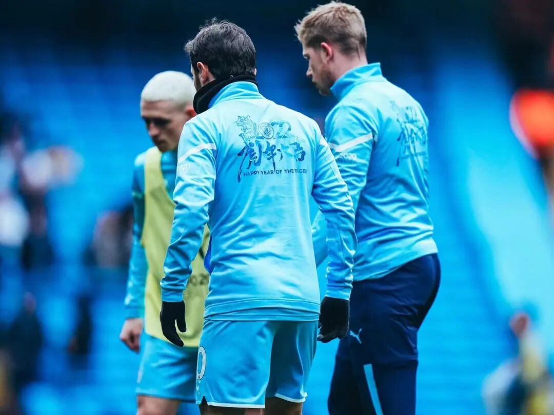 在今年过年期间,曼城不仅录制了独具特色的拜年视频,登上央视向中国球迷送上新春的祝福,他们还在比赛训练期间,统一穿上了印有「虎年大吉」的训练服,把虎年元素和曼城的Logo,巧妙结合在了一起。