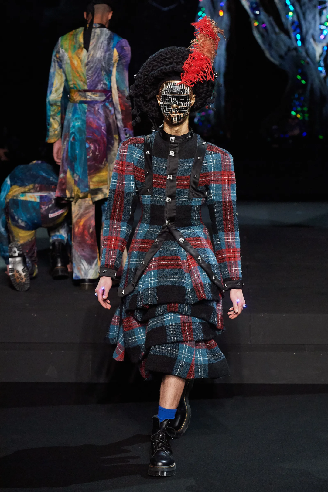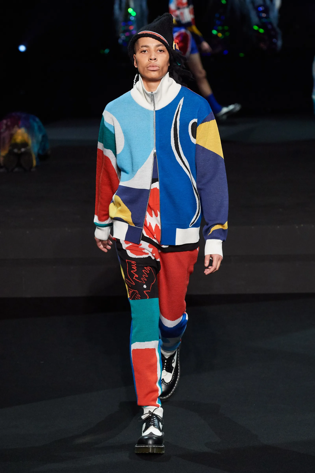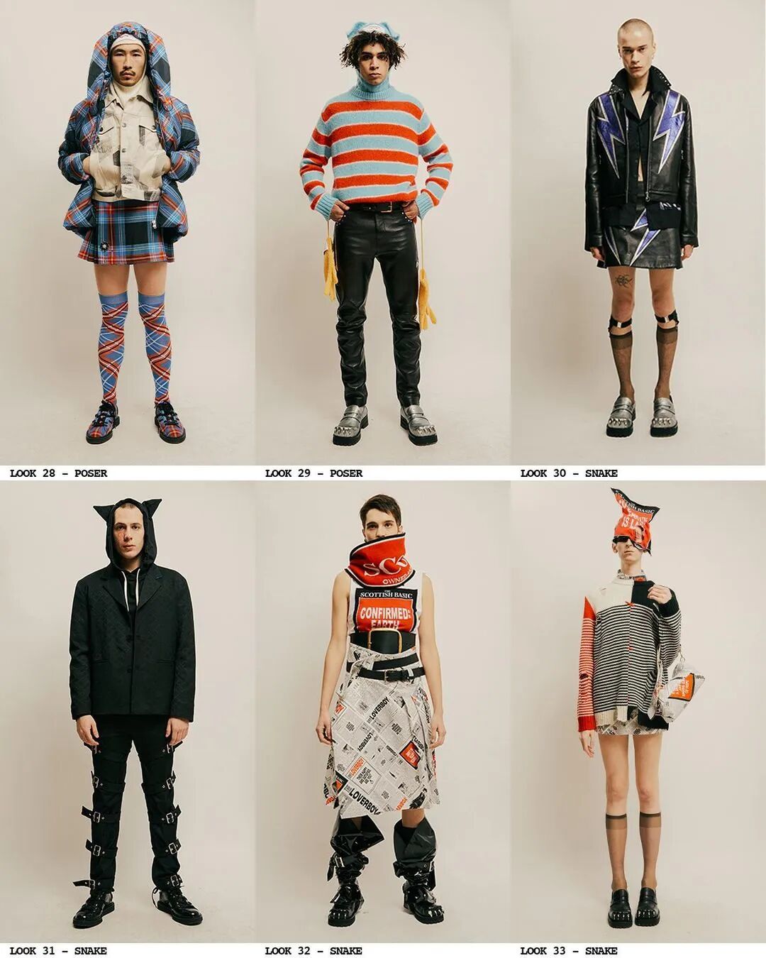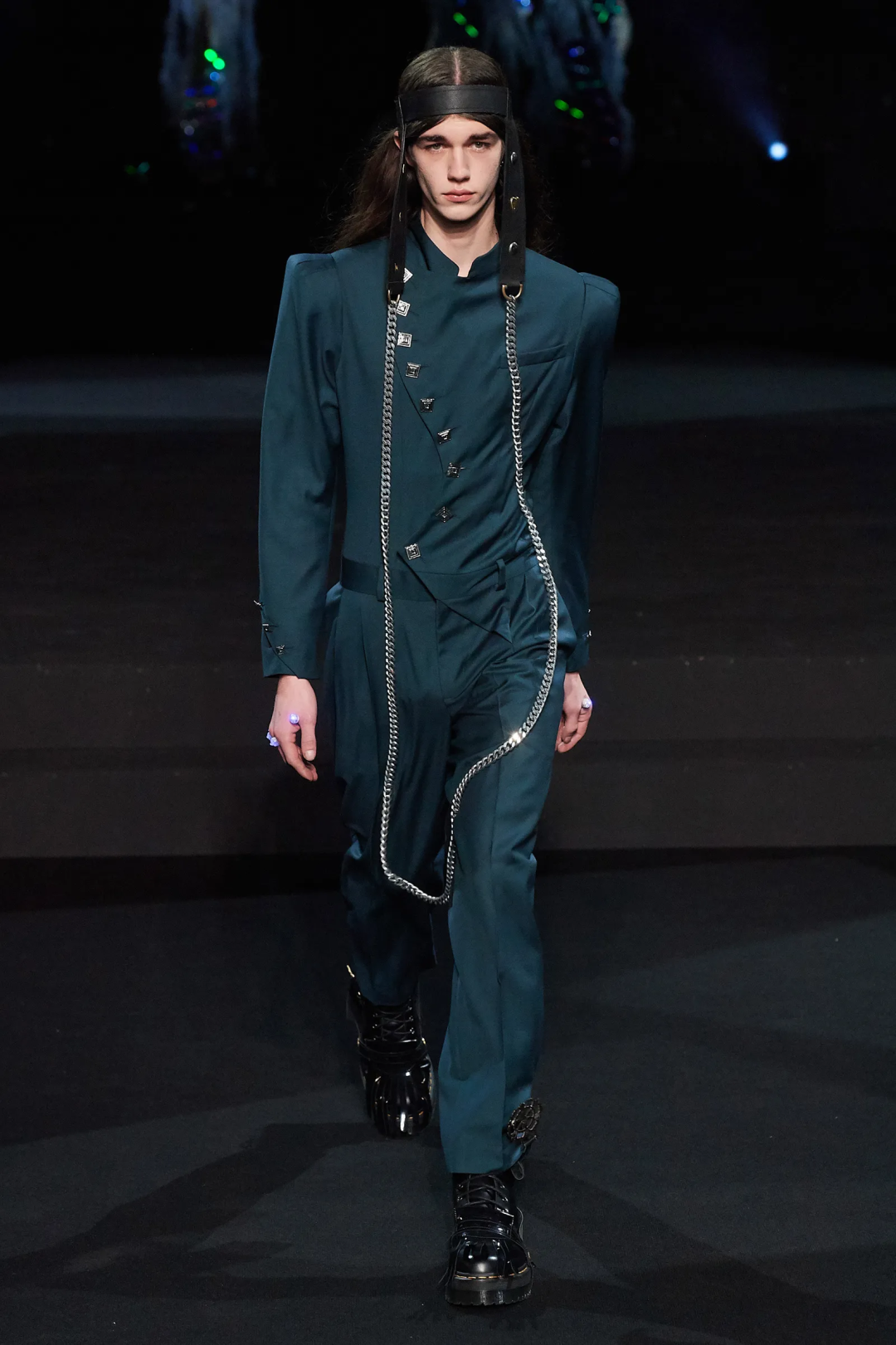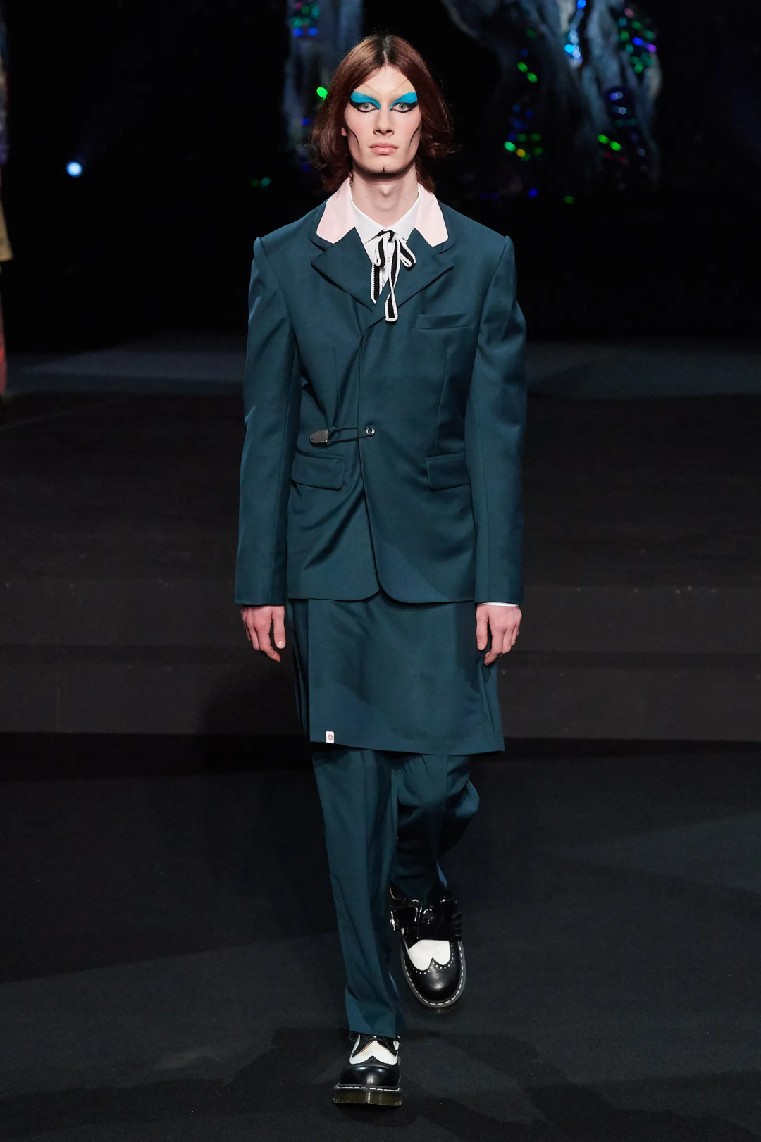 受艺术家约翰·伯恩1987年作品《The Slab Boys Trilogy》的启发,Charles Jeffrey将秀场打造成了工业引擎室,将作品中的现实主义、讽刺主义带到了秀场。