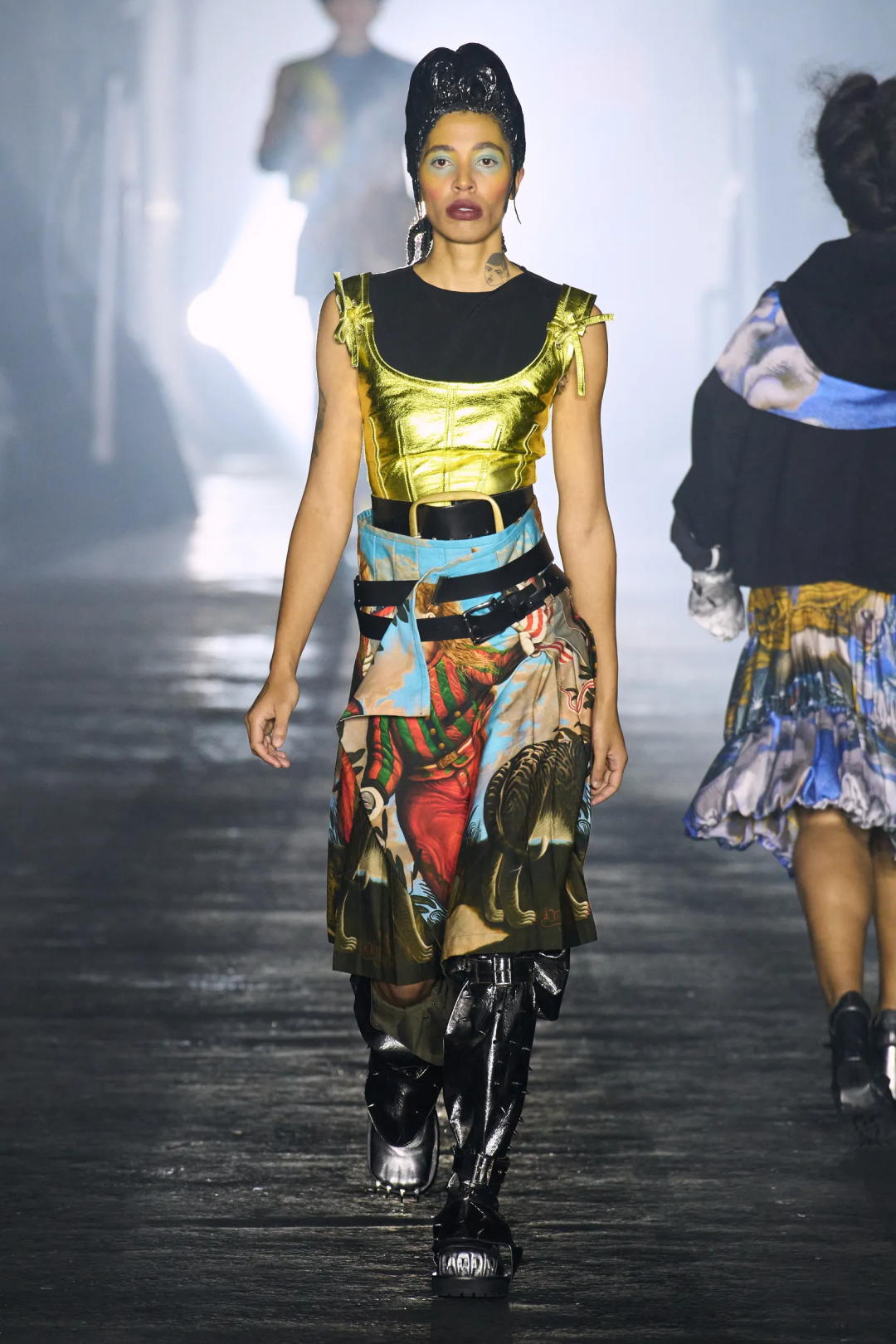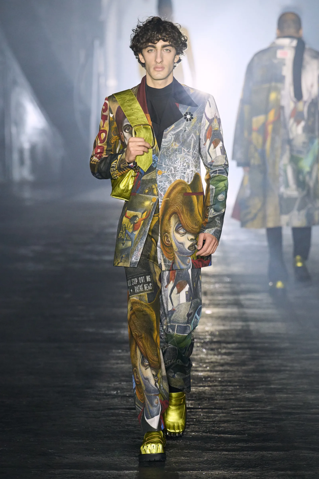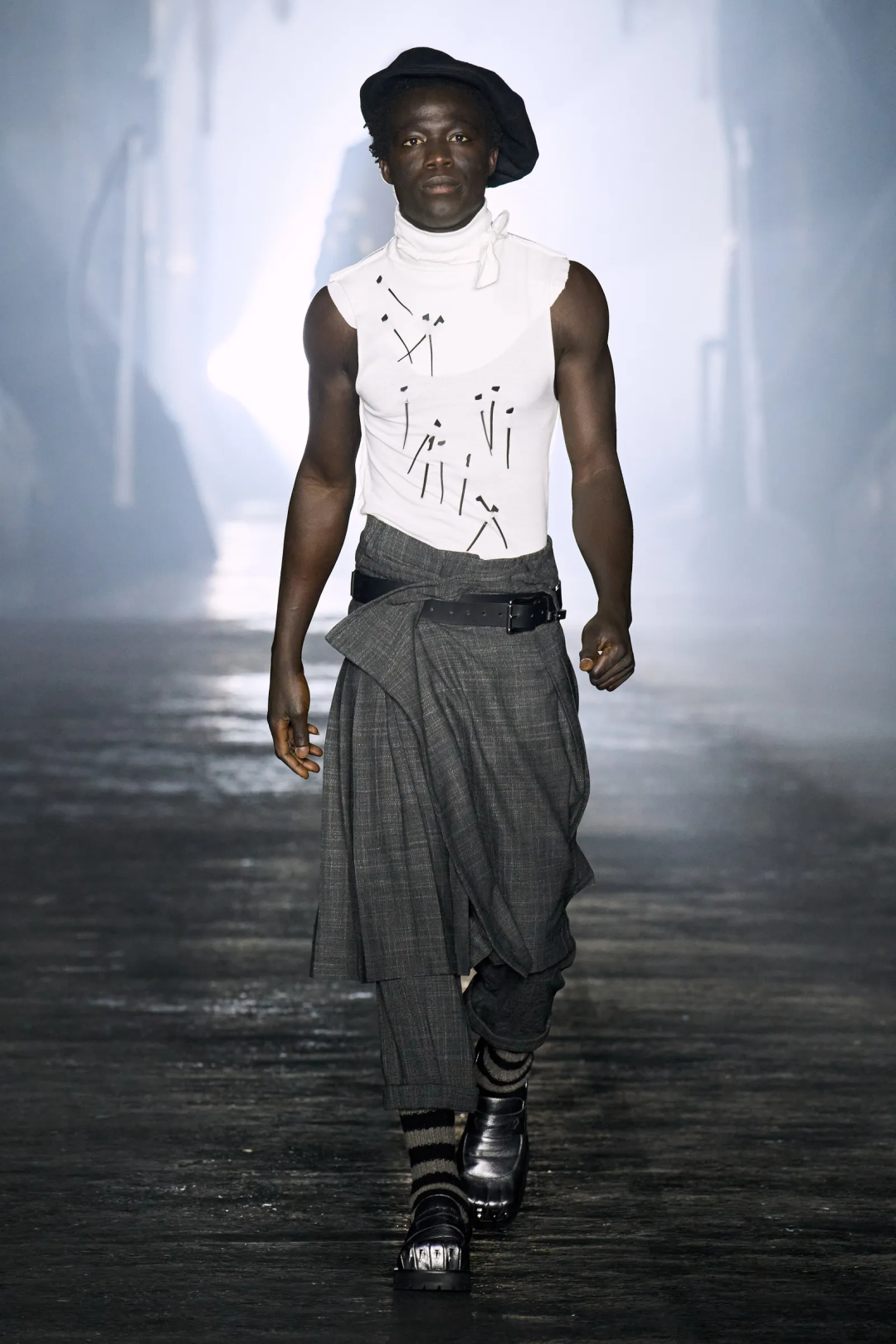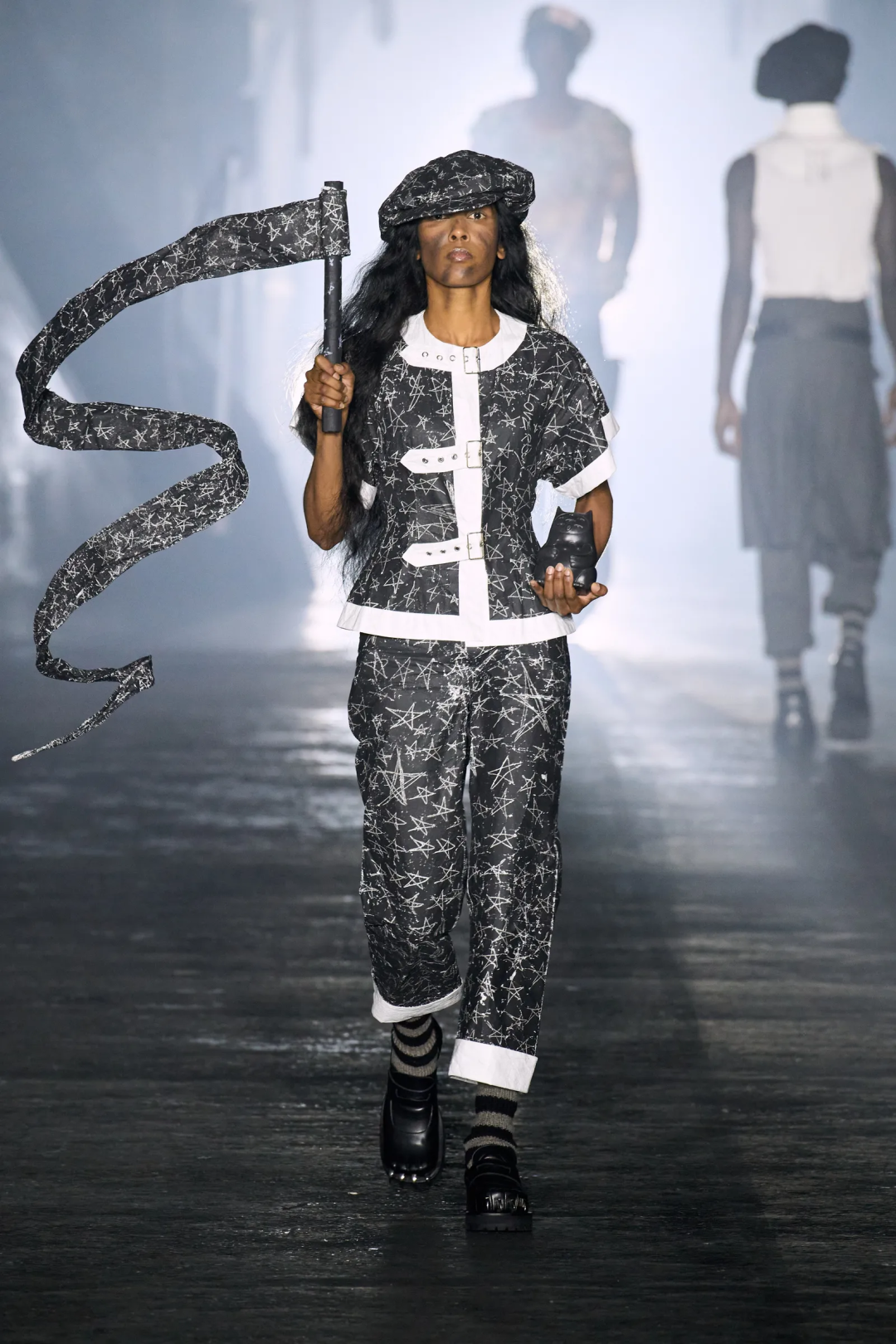 受艺术家约翰·伯恩1987年作品《The Slab Boys Trilogy》的启发,Charles Jeffrey将秀场打造成了工业引擎室,将作品中的现实主义、讽刺主义带到了秀场。