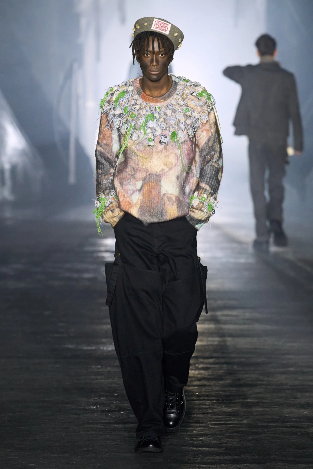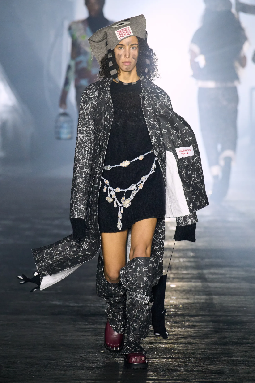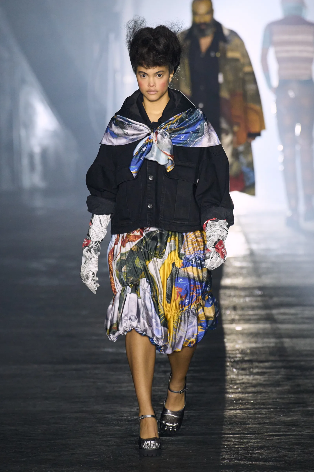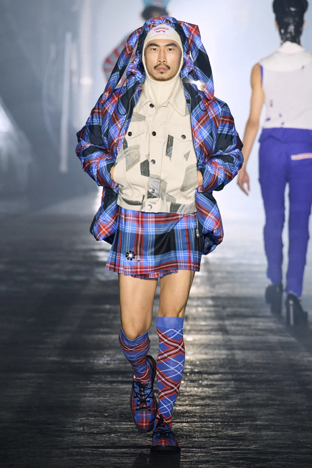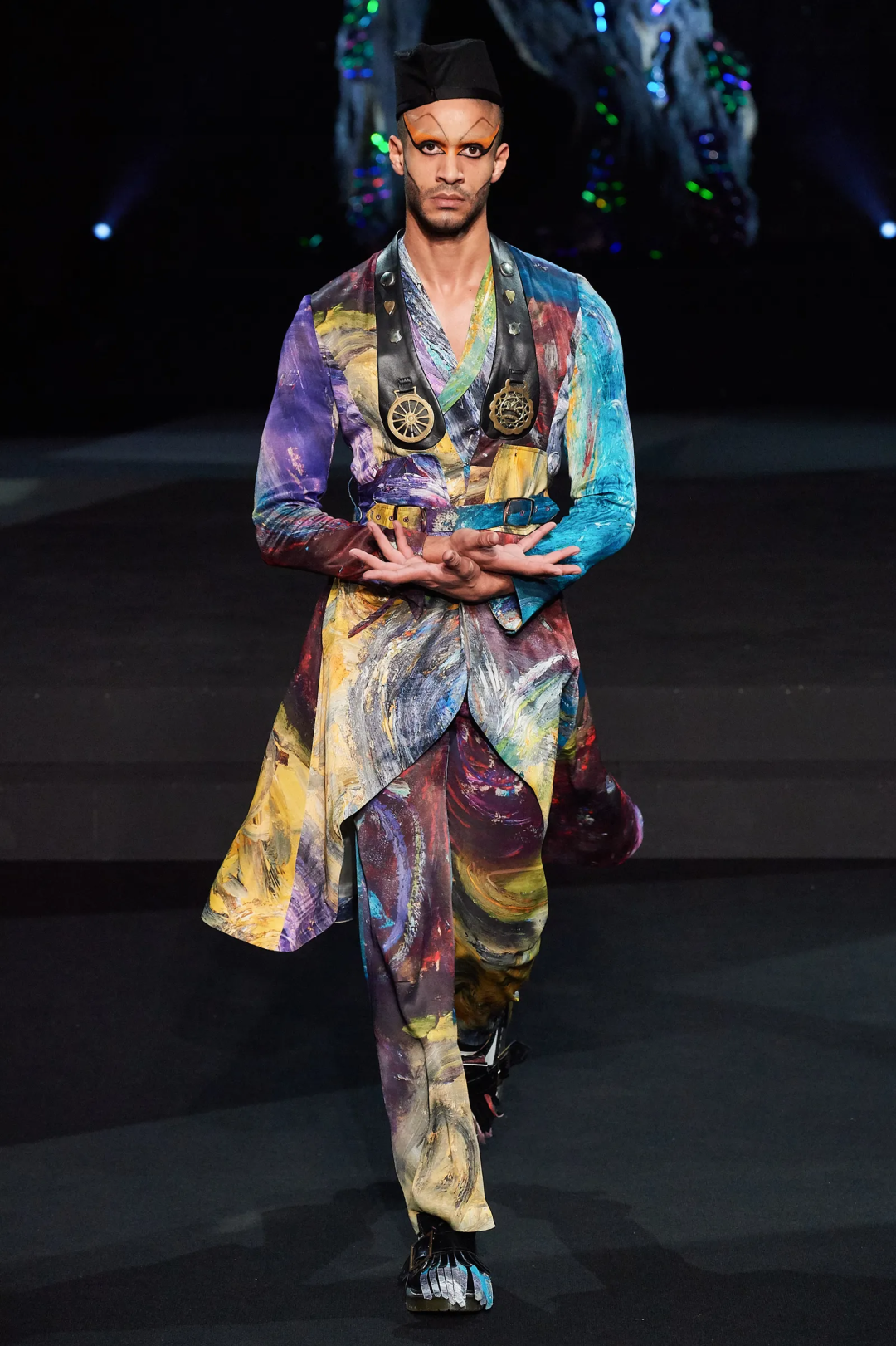 受艺术家约翰·伯恩1987年作品《The Slab Boys Trilogy》的启发,Charles Jeffrey将秀场打造成了工业引擎室,将作品中的现实主义、讽刺主义带到了秀场。