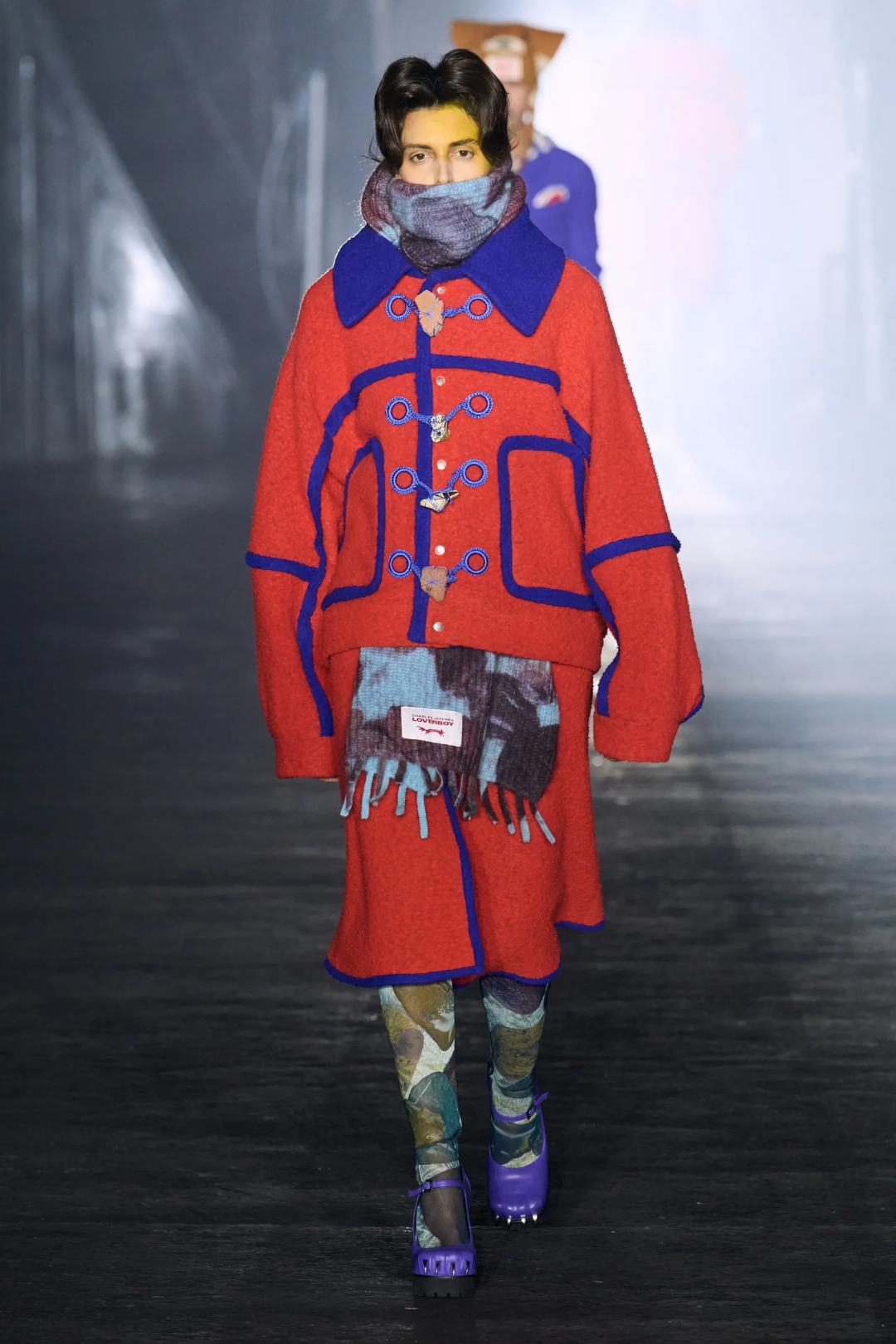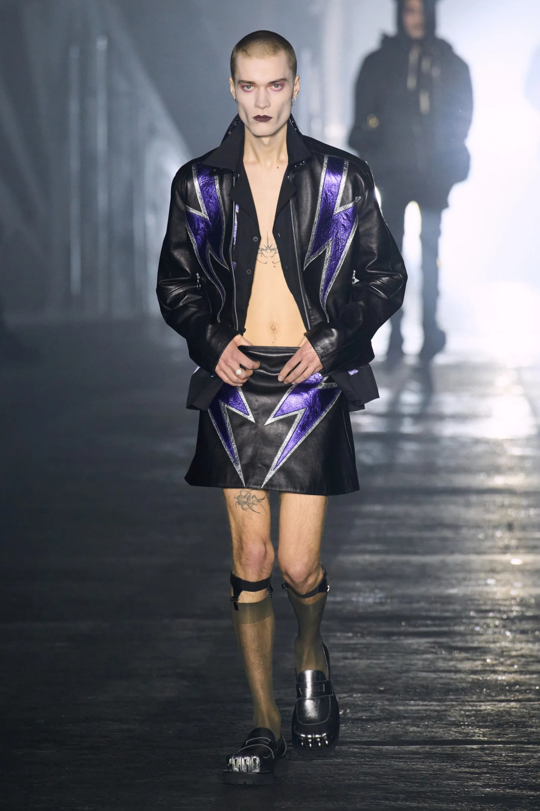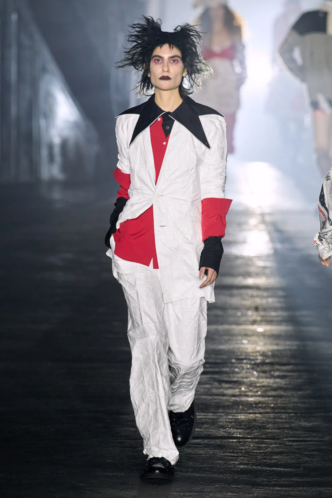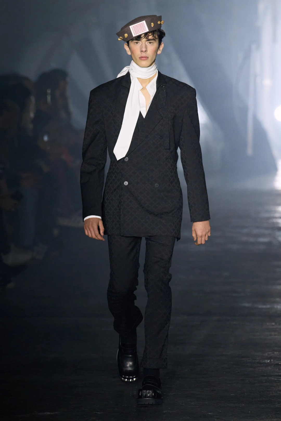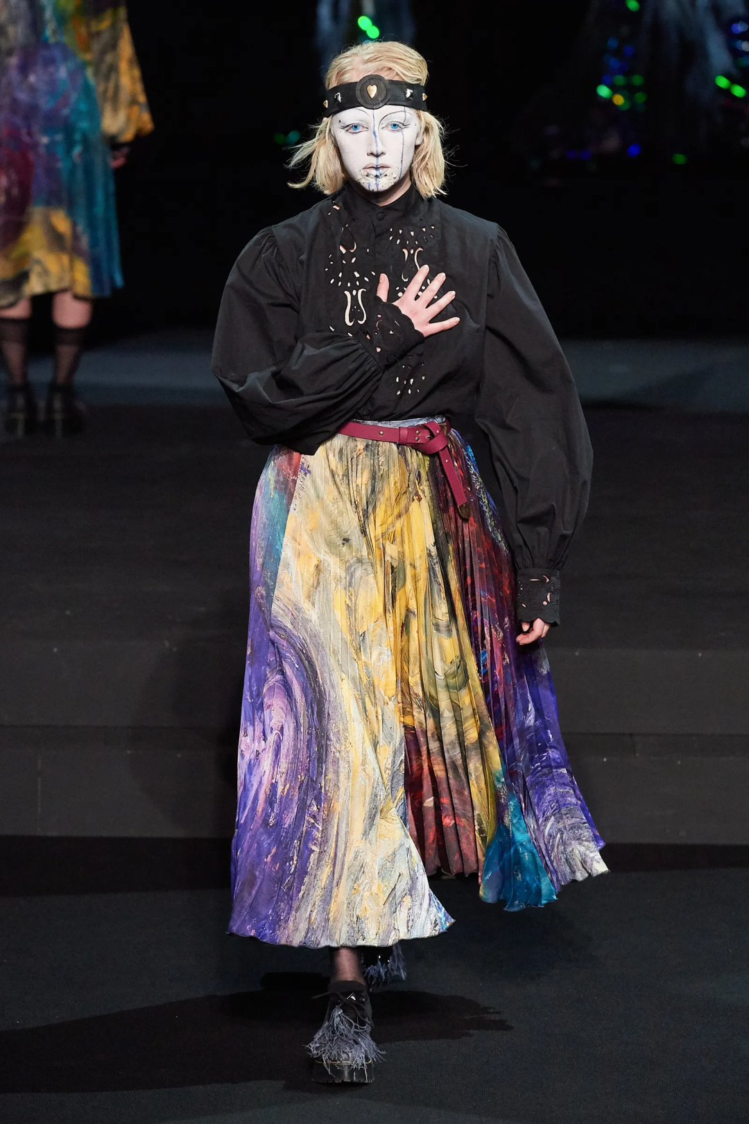 受艺术家约翰·伯恩1987年作品《The Slab Boys Trilogy》的启发,Charles Jeffrey将秀场打造成了工业引擎室,将作品中的现实主义、讽刺主义带到了秀场。