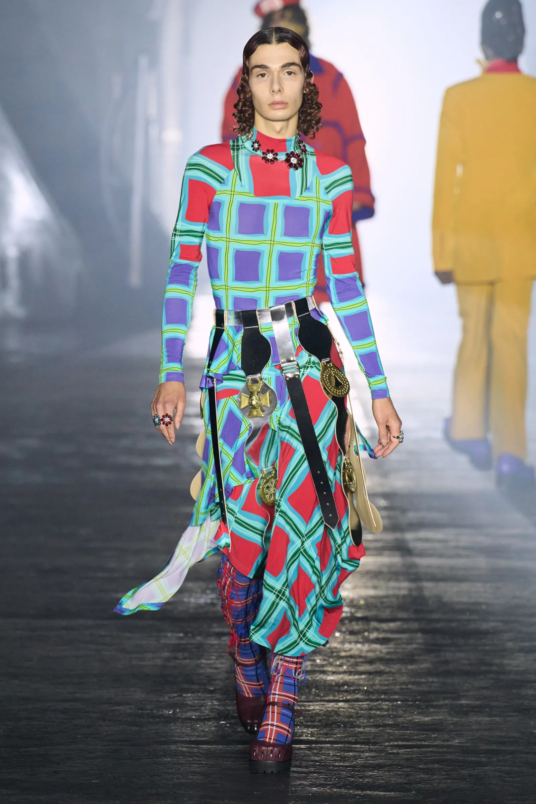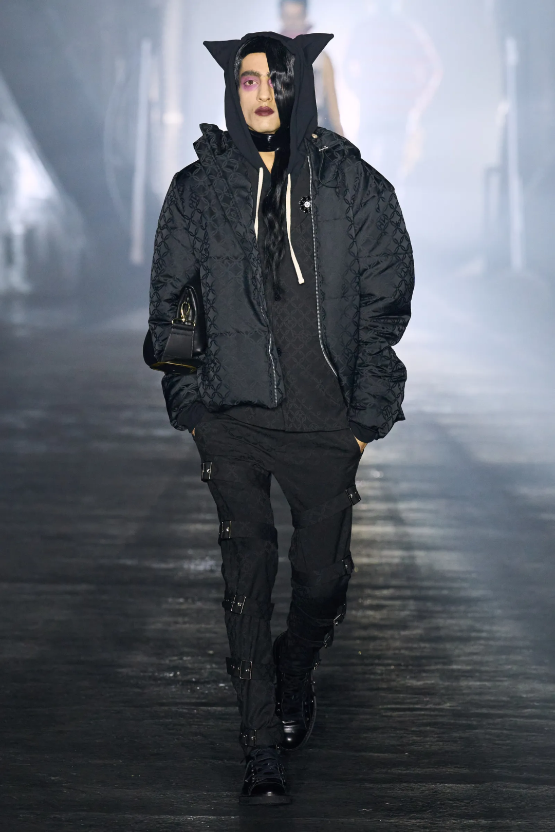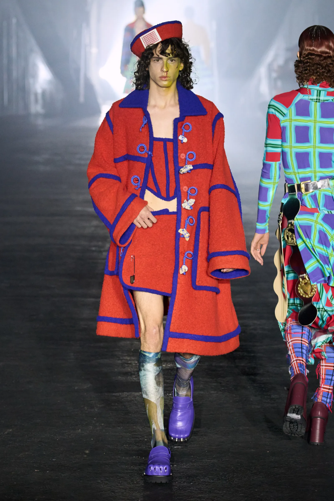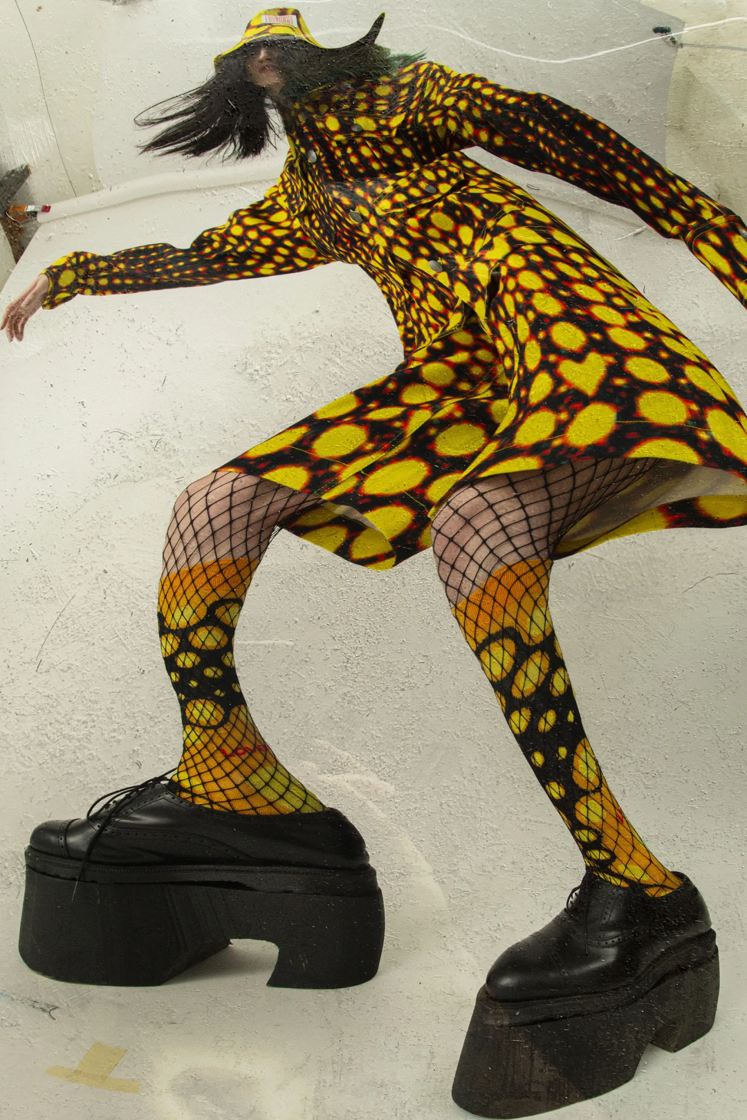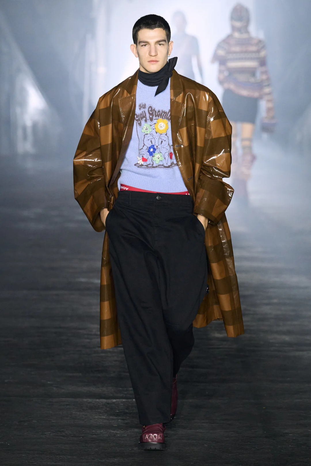 受艺术家约翰·伯恩1987年作品《The Slab Boys Trilogy》的启发,Charles Jeffrey将秀场打造成了工业引擎室,将作品中的现实主义、讽刺主义带到了秀场。