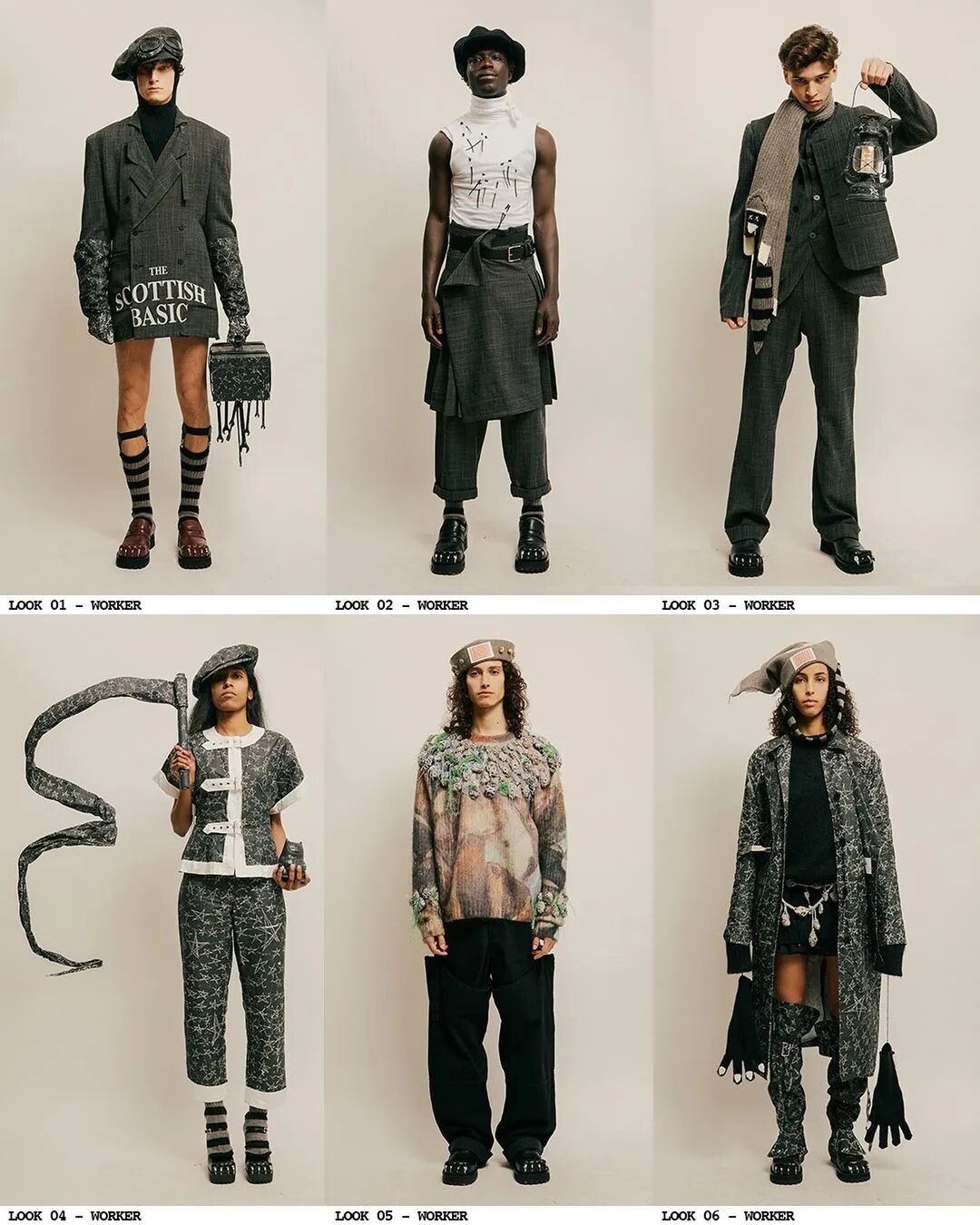 Jeffrey将该系列描述为一部精巧的悲剧,作品依旧延续品牌一贯大胆、奇异、古怪的特点,以精细的剪裁、夸张带皱褶的袖子、用作盔甲的格子大衣来表现“荒芜的世界”。新系列的剧本角色分为两个阵营,他们脸上都涂满了水彩颜料,其飘逸的连衣裙和裸露的皮肤都涂有“来自仅存自然痕迹的世界的自然回忆”。然后彼此面对,进行最后的舞蹈,整体氛围充满了民俗风情,这也是Jeffrey对苏格兰传统的致敬。