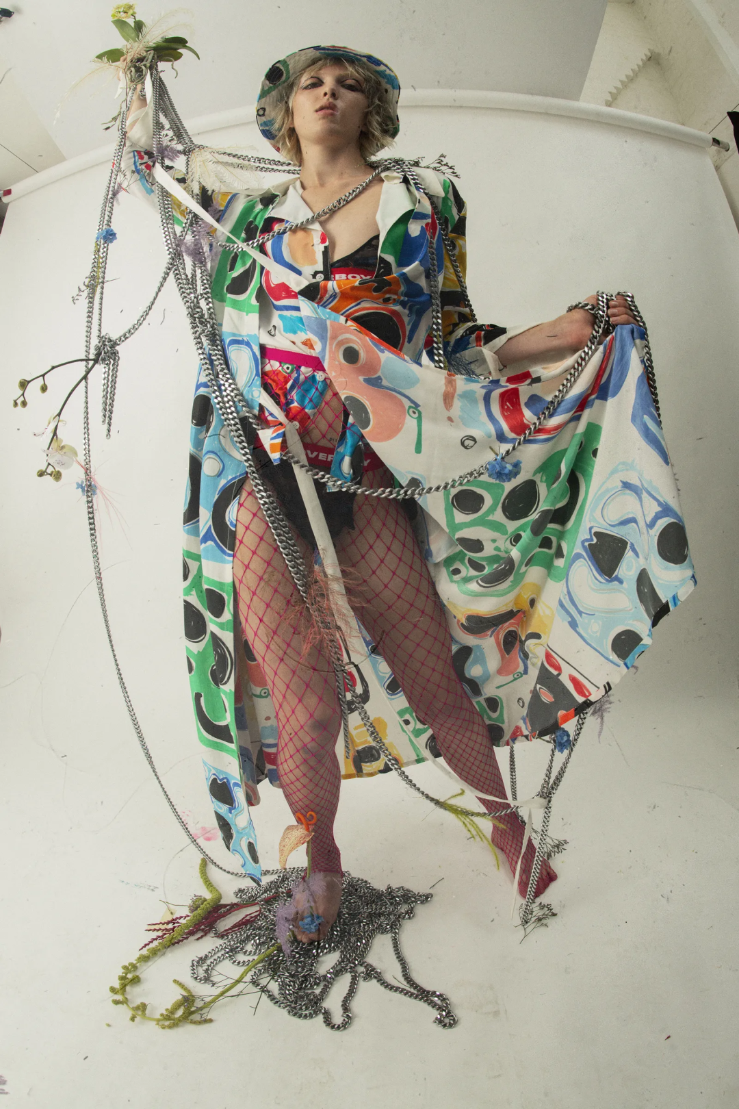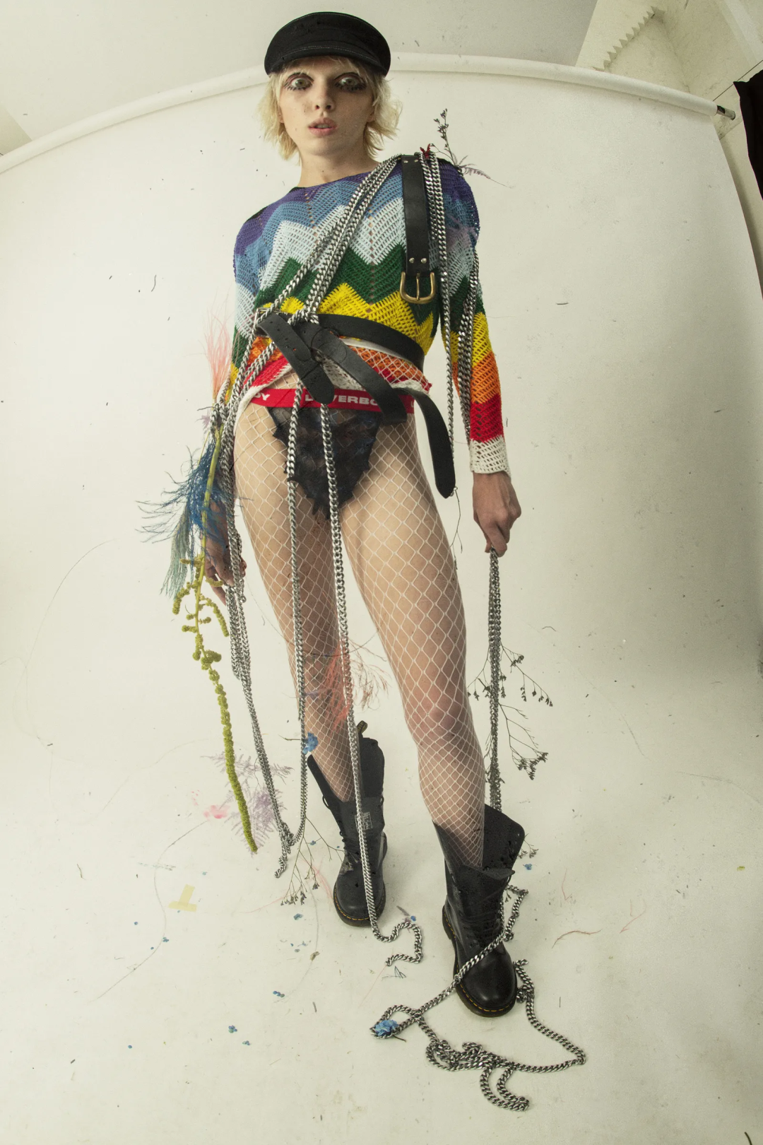 Charles Jeffrey是出生于苏格兰的设计师,18岁时从格拉斯哥搬到伦敦,本科就读于中央圣马丁学院。2015年创立了品牌Charles Jeffrey Loverboy。其一贯叛逆荒诞自然与素负盛名的圣马丁风格一脉相承,并多次入围LVMH Prize。
