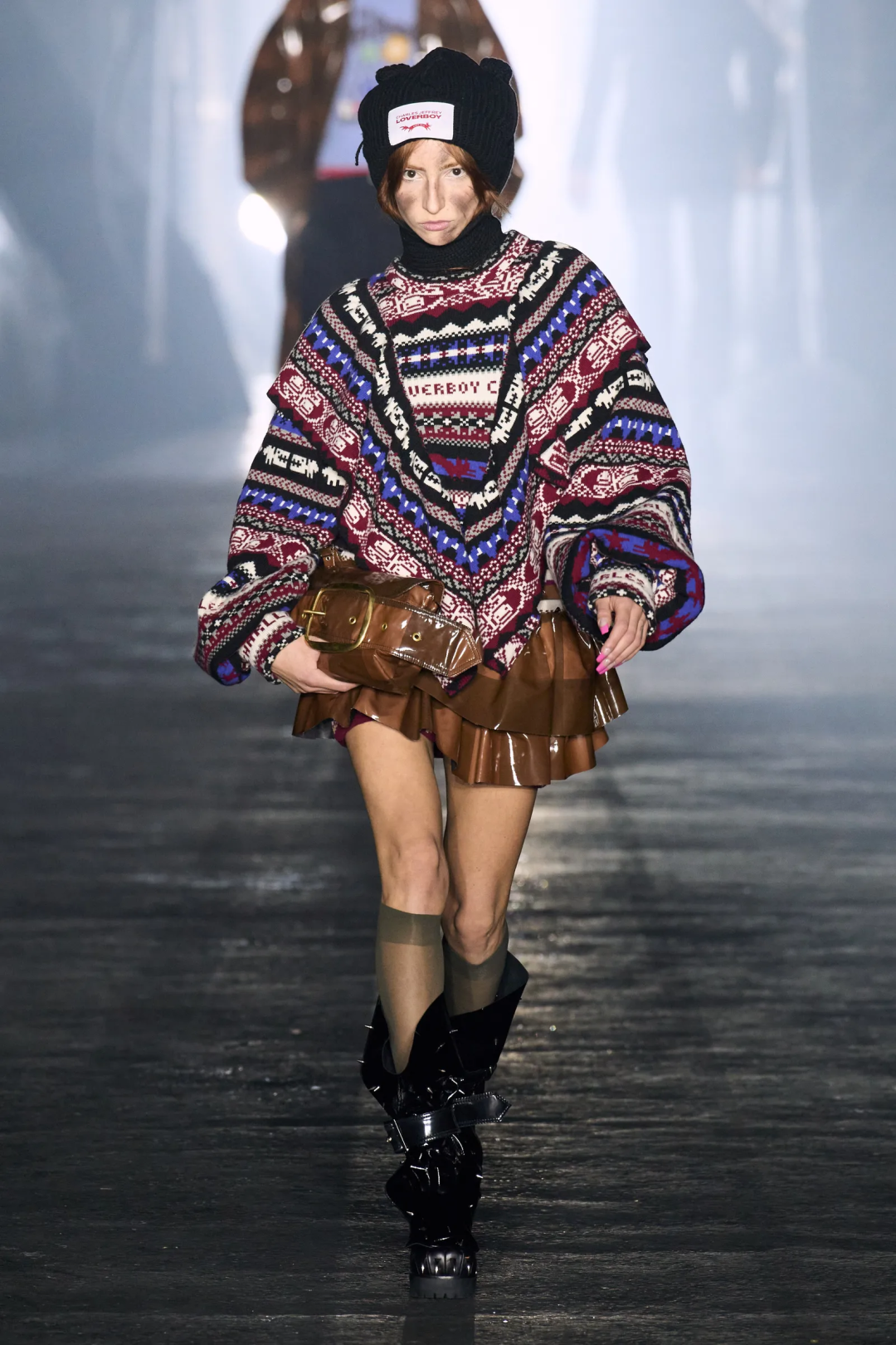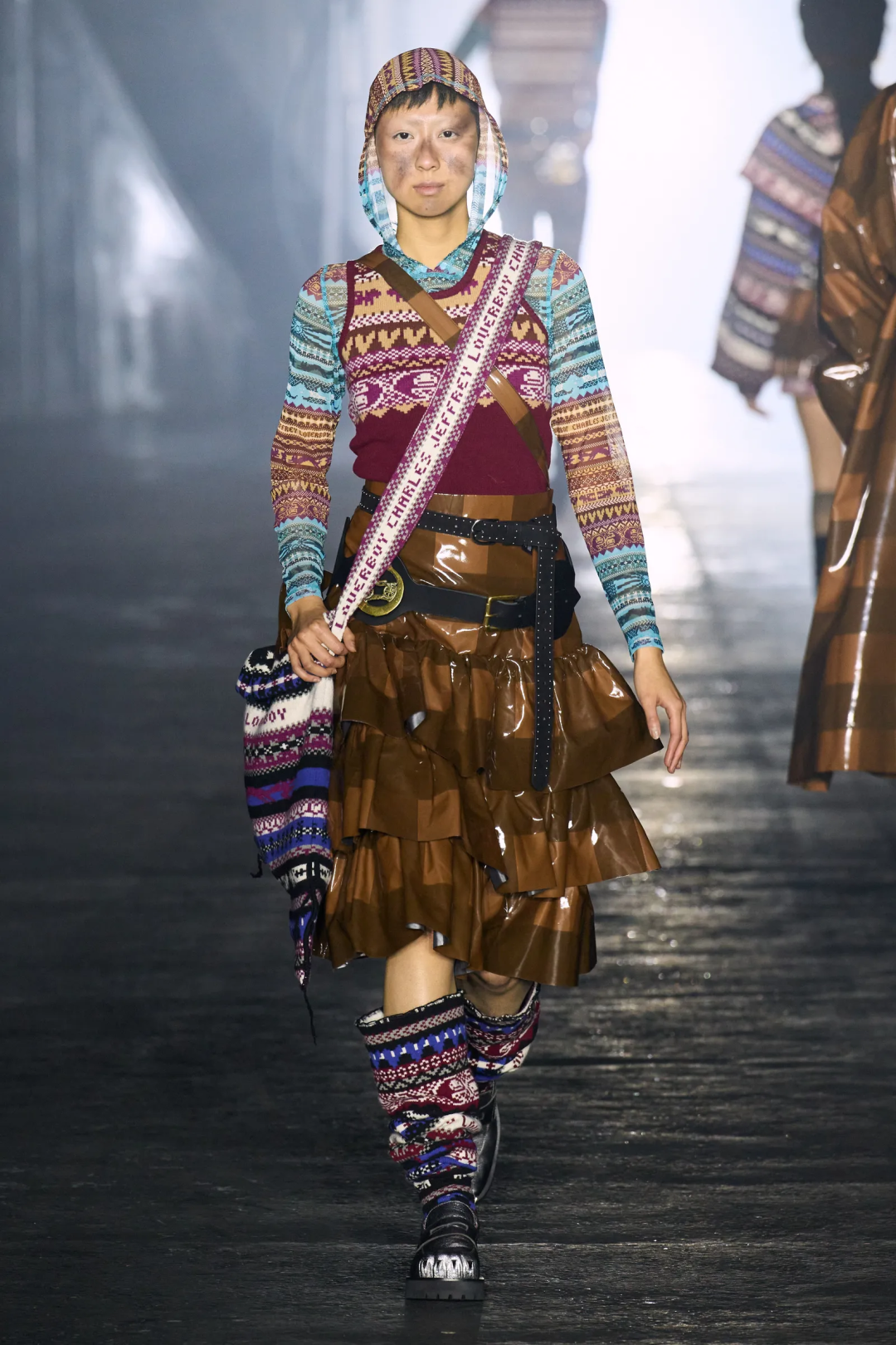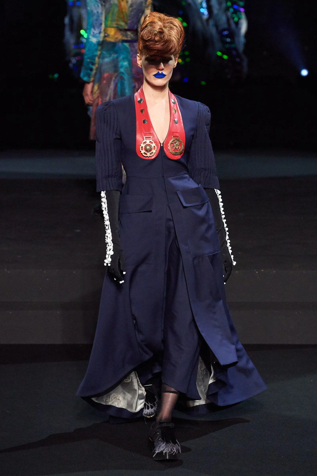 这一季展开了舞台剧般的三幕式结构,对应着三种不同的人,工人(worker),装腔作势者(posers),蛇(snakes)。最先出场的是工人,模特们脸上抹着油渍,提着煤油灯,拿着金属箱,穿着印有马铃薯袋的衣服。白色背心上随意穿插的钉子是工业主义留下的印迹,石头与绿色毛线编织在一起,模拟出衣服被苔藓缠绕的状态。