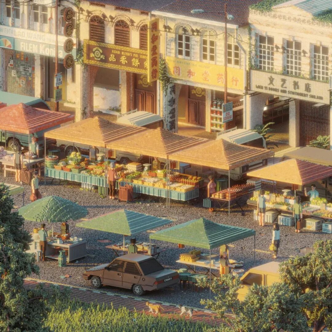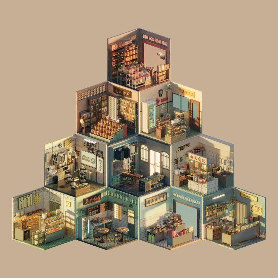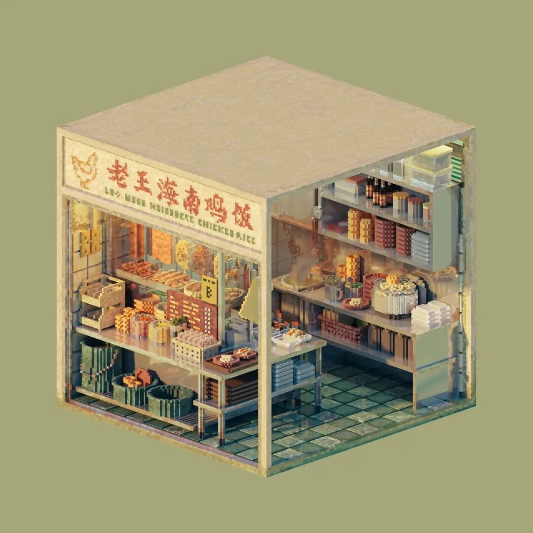 翻开脑袋的记忆库,回味那些逝去的人、消失的街景,总觉回忆是美好的。来自马来西亚的艺术家 ShinOh,自居为一个“被困在过去”的人,时常怀缅过去,却总是从回忆中获得前行的力量。因此,她将马来西亚的旧商店作为灵感,透过3D像素技术打造出像真度极高的VoxelShops系列,望能唤起大家珍惜现存仅有的老铺。