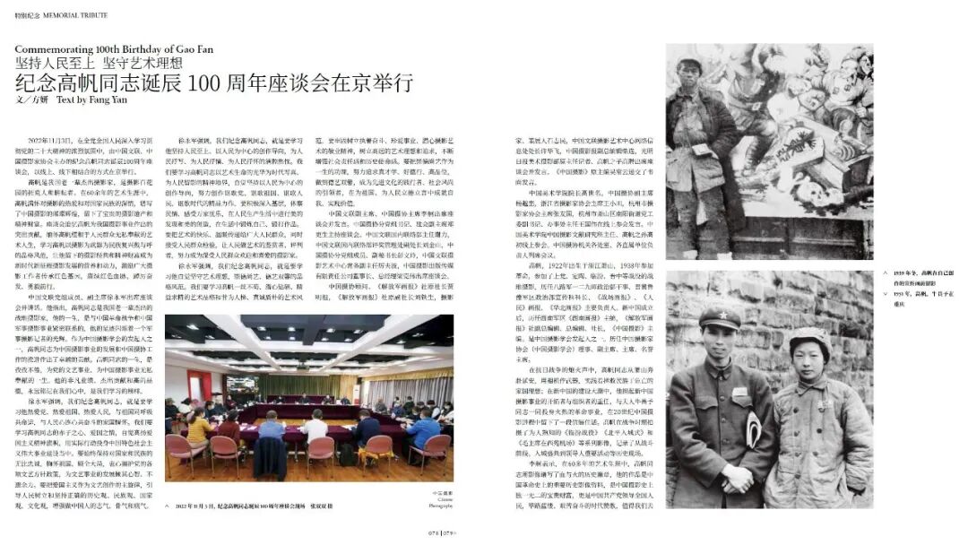 · 坚持人民至上,坚守艺术理想——纪念高帆同志诞辰100 周年座谈会在京举行 文/方妍