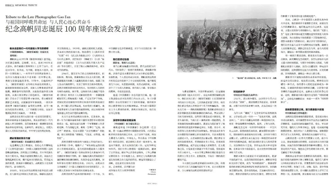 高帆是我国老一辈杰出摄影家,是摄影百花园的拓荒人和耕耘者。本次座谈会追忆高帆为我国摄影事业作出的突出贡献,缅怀高帆植根于人民群众无私奉献的艺术人生,学习高帆以摄影为武器为民族复兴鼓与呼的品格风范,让他留下的摄影经典和精神财富成为新时代新征程摄影发展的营养和动力。