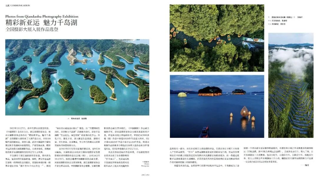 2022年10月27日,由中共淳安县委宣传部、《中国摄影》杂志社主办,浙江省摄影家协会、杭州市摄影家协会协办的“精彩新亚运、魅力千岛湖”全国摄影大展结束了入展作品公示,共有100幅作品脱颖而出,获选入展。此次大展面向全国征集反映千岛湖城乡面貌变化、产业发展成果、精彩亚运活动等方面的摄影作品,力求多角度、多侧面地反映千岛湖的独特自然风光与人文风情。