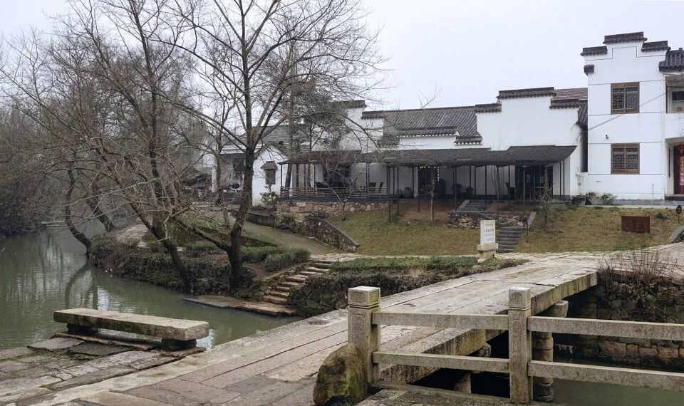 业主挑选了散布在村中的六栋房子,希望将它们改造成分散式的乡间酒店。这些房子有建于清末的木屋,有杂物仓库,有贴瓷砖的二层小楼,以及一个刚落成的位于石桥北侧的仿古小展厅。我们将最靠近石桥的小展厅,改造成为整个酒店的起居室,提供图书和茶点,并向村民开放,其他几栋则改为客房。