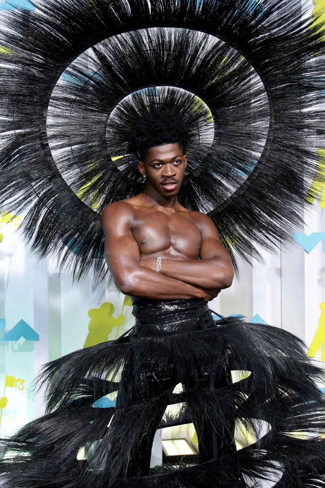 而当晚身着这套黑色羽毛礼服的Lil Nas X也备受好评,网友评价他「用自身成功颠覆了大众对性少数群体的刻板印象」。