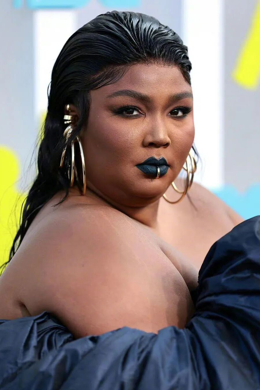 Lizzo身穿一件由Glenn Martens设计的Jean Paul Gaultier 2022春季高定系列的大廓形礼服。湿发造型搭配墨绿唇色,加上具有夸张戏剧感的金属耳环,演绎大气磅礴的华丽。