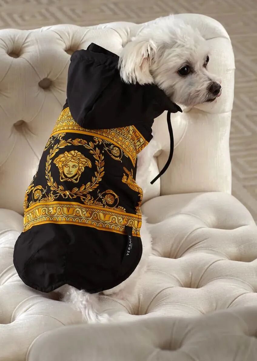 2021年,Versace推出了新系列的宠物床和雨衣,金色巴洛克风格,参考了标志性的范思哲浴袍。该系列还包括了装饰有金色美杜莎奖章的项圈、皮带和挽具。