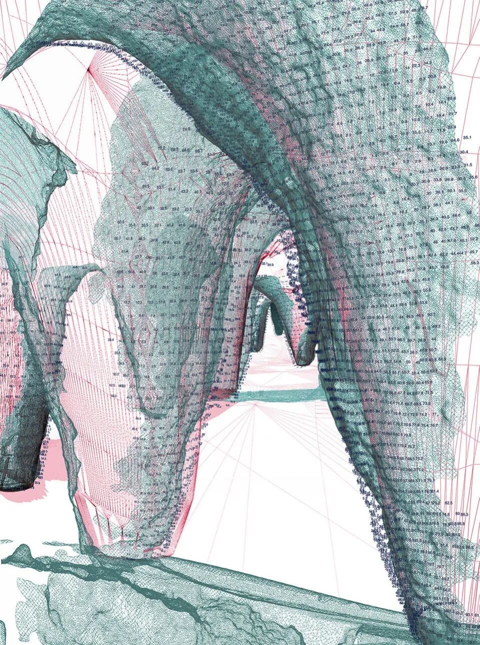 不规则的洞穴支柱看似随意穿插其间,但其实结构的每一处延伸都是精细化计算的结果。