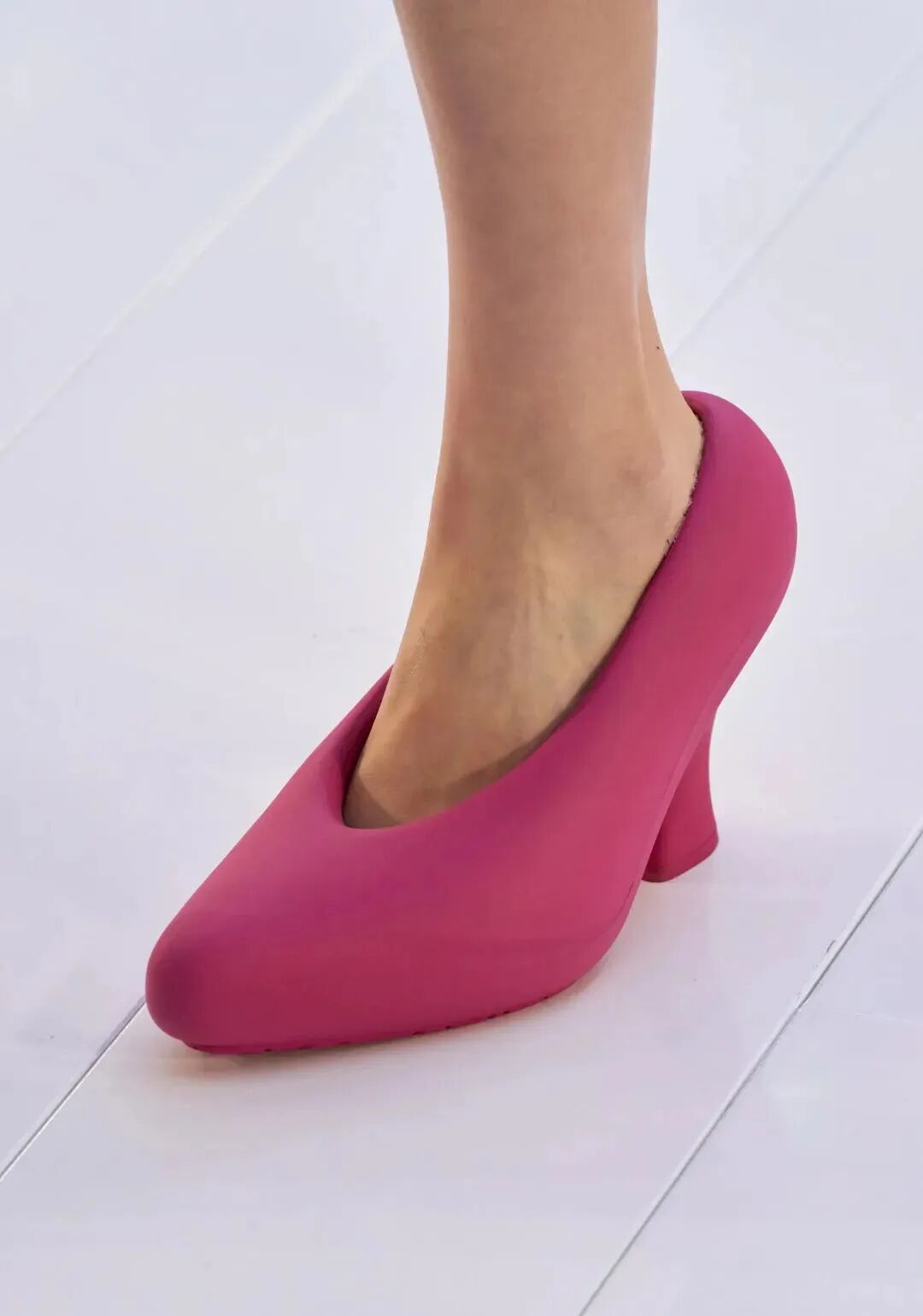 而Loewe在2023春夏系列秀场中所推出的一款细跟高跟鞋,则是从《米老鼠》中的米妮同款高跟鞋获得了灵感。