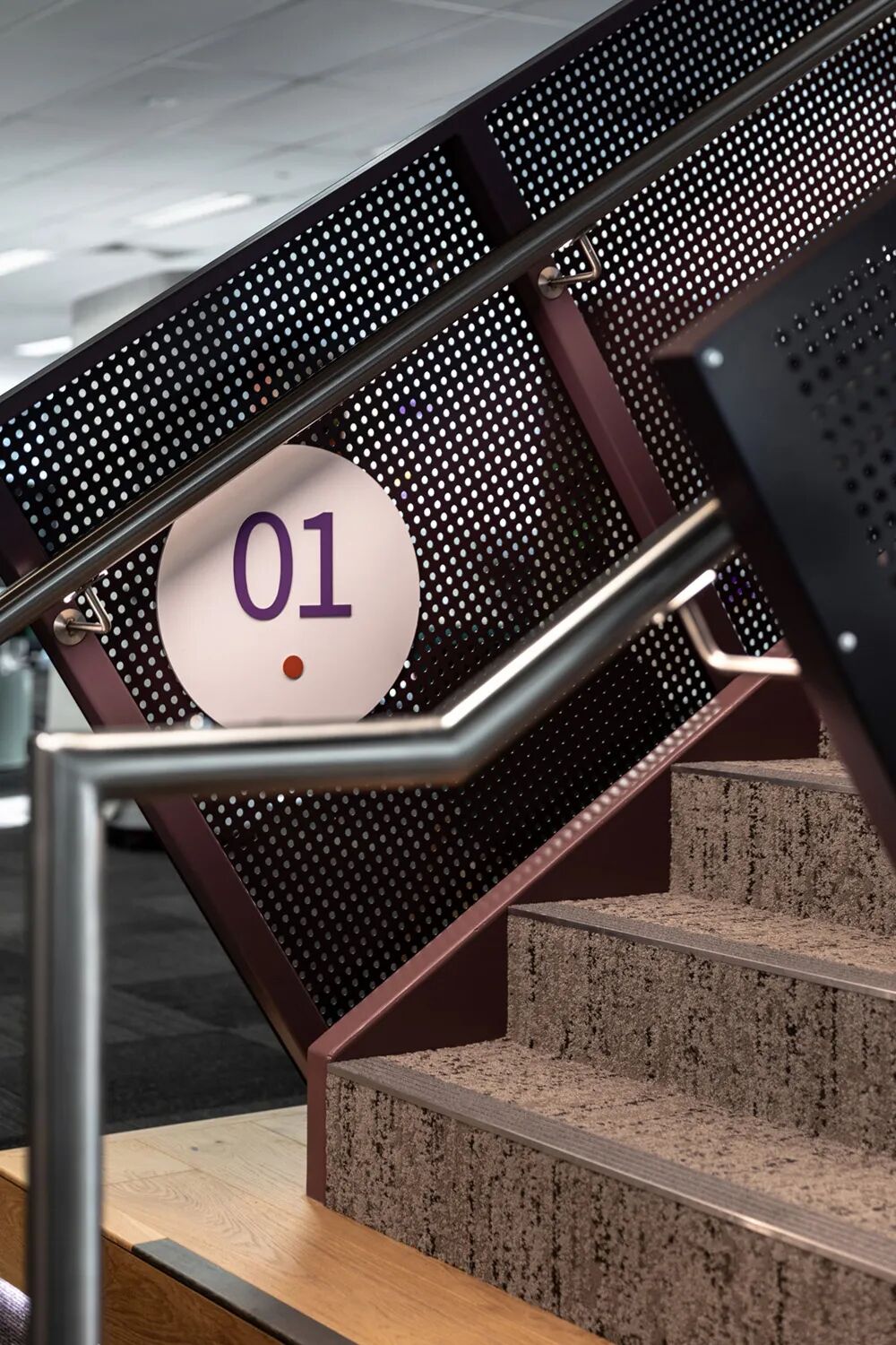 整个空间设计以一处贯穿三个楼层的内部楼梯为核心空间,所有的动态协作围绕这里展开。工作站、灵活机动的区域、开放协作区和围合的专注空间等丰富的工作场景给予员工自由选择的权利。