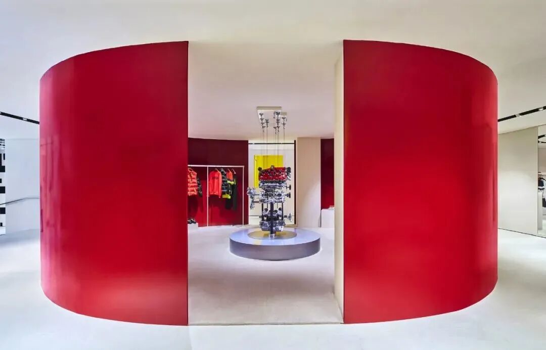 这家店,也是品牌推出全新时装、配饰系列后的首个展示空间。560㎡的马拉内罗店以现代语言重述了法拉利工匠精神和设计思考。赤陶、玻璃和粘土砖是门店的主要建材,法拉利的经典色红色和黄色成为空间的主要色调,以一种现代化的表达方式传递了品牌美学。