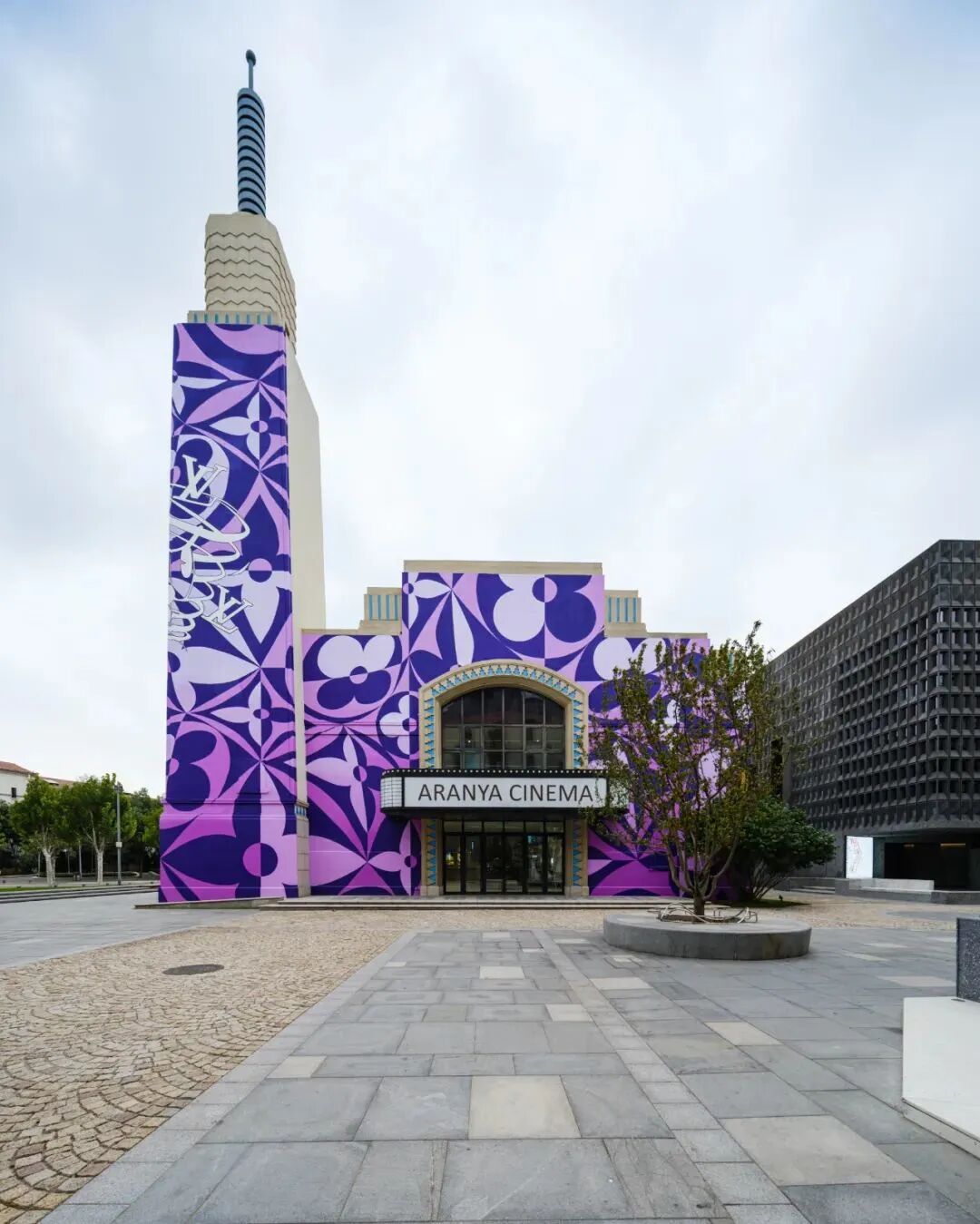 为了融入阿那亚的当地风格,打造更具Louis Vuitton品牌风格的社群氛围,在本次大秀期间,Louis Vuitton将大门、路灯、斑马线到园区巴士,通通换上了缤纷的黄紫色调新装,处处都充满了童趣奇幻的卡通元素。就连酒神剧场和阿那亚影院也都焕然一新,带来了强烈的视觉冲击力。