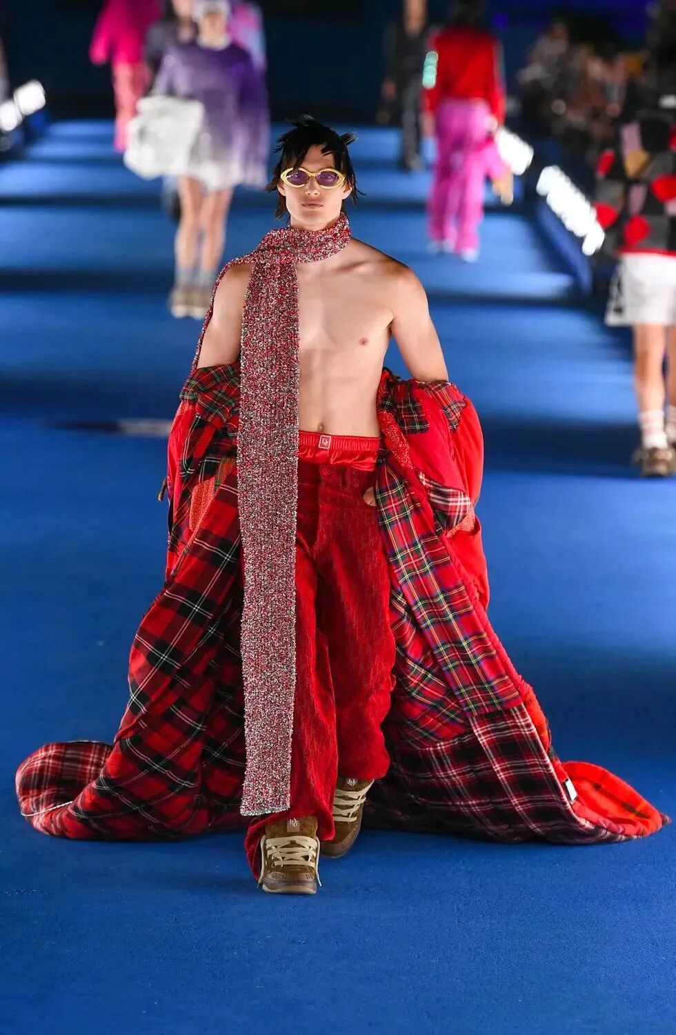 这位曾在1989年入驻Dior的创意总监,因其背景和对创造时尚设计的原始态度而被称为「时尚建筑师」,Eli Russell Linnetz此番便以格纹元素融合经典的「被子」造型致敬Gianfranco Ferré在1991年秋冬系列的红色披风。