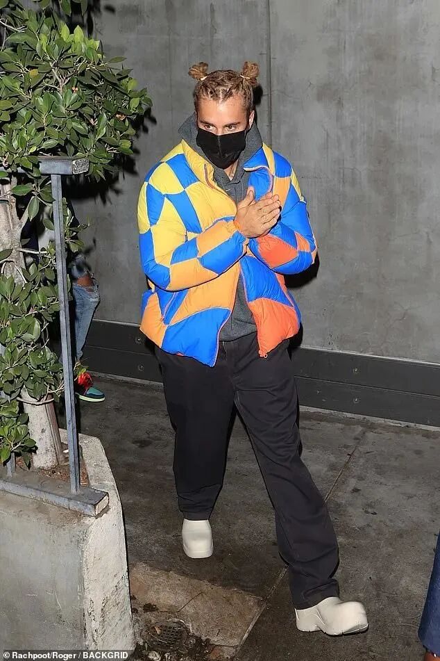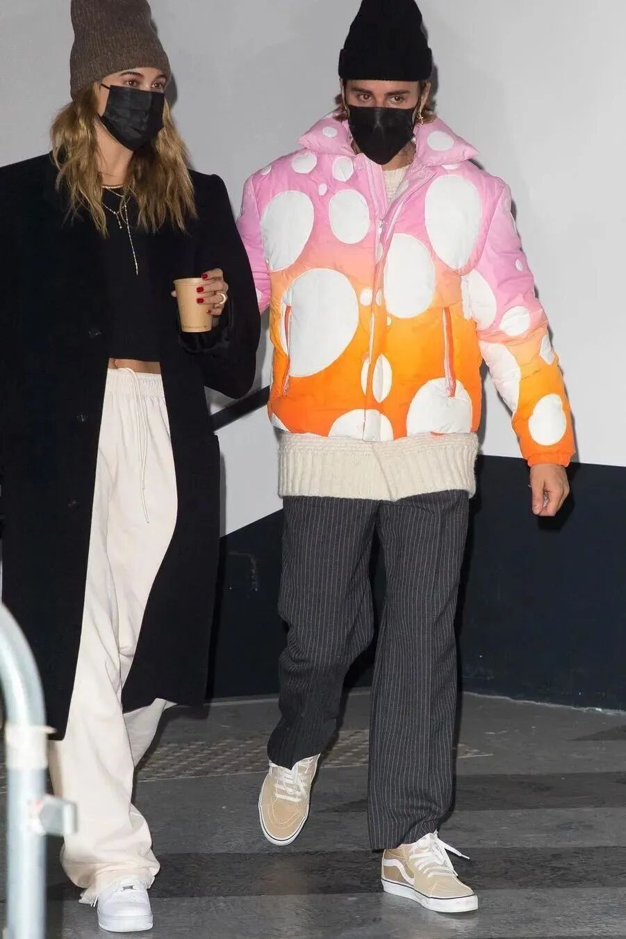去年上半年,Justin Bieber曾在多个场合连续穿着两款鲜艳的羽绒撞色夹克,被媒体拍下不少帅照。这两款夹克均来自ERL 2020秋冬系列的标志性单品,粉橙色大波点羽绒售价高达930美元,而蓝黄色格纹羽绒则售价800美元,同样价格不菲。