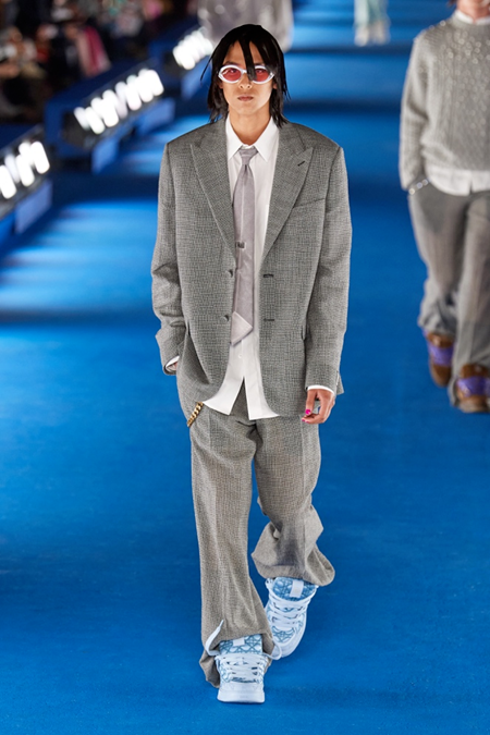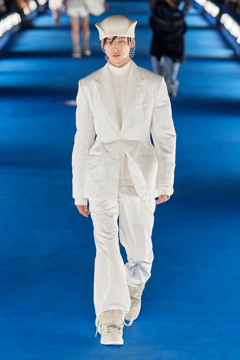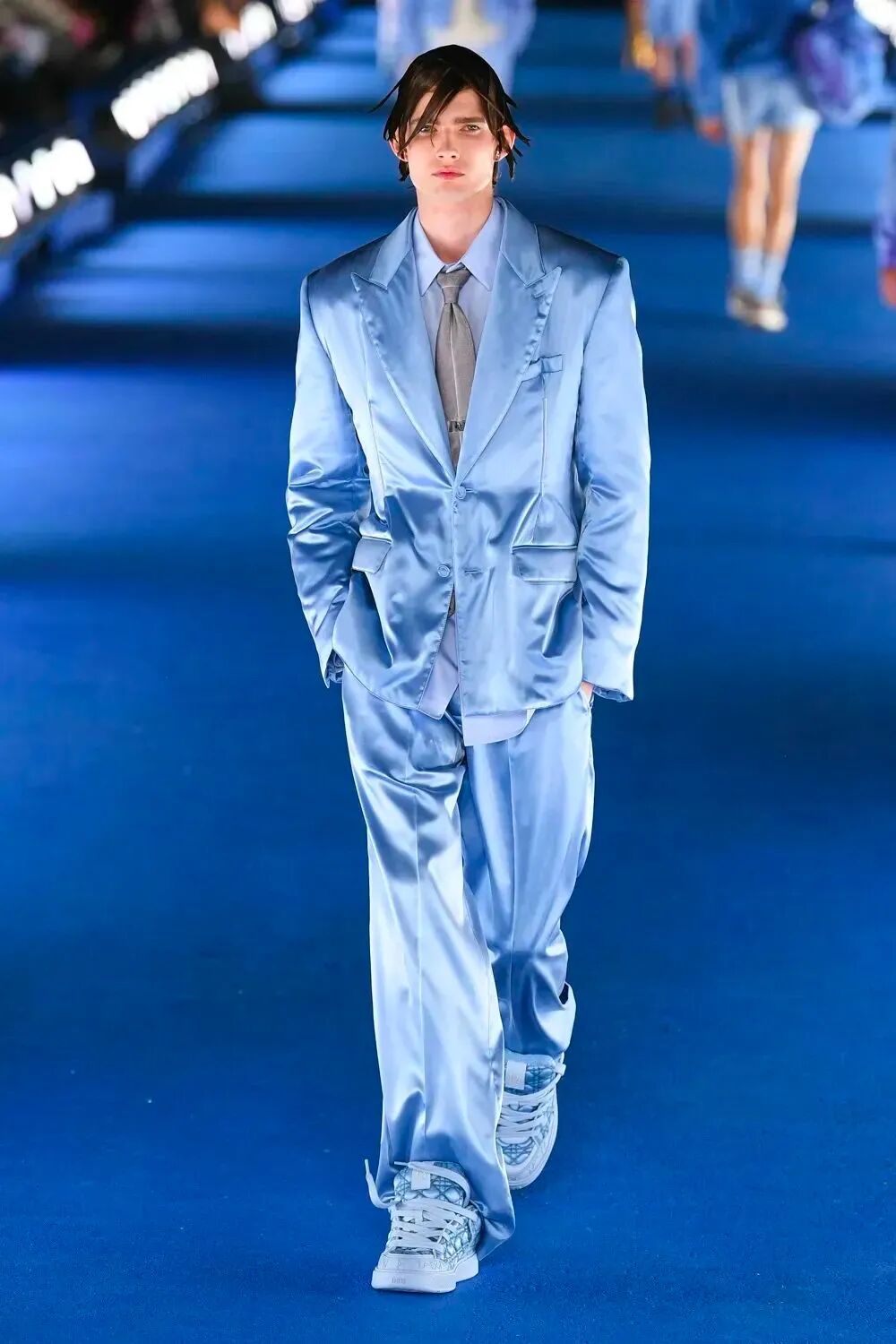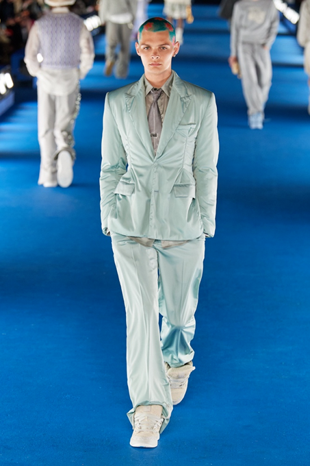此次系列中收腰的西装廓形就是两位设计师将 Christian Dior在1947年设计的Bar Jacket进行重新复刻,打造成更符合男性身材特征的版型。