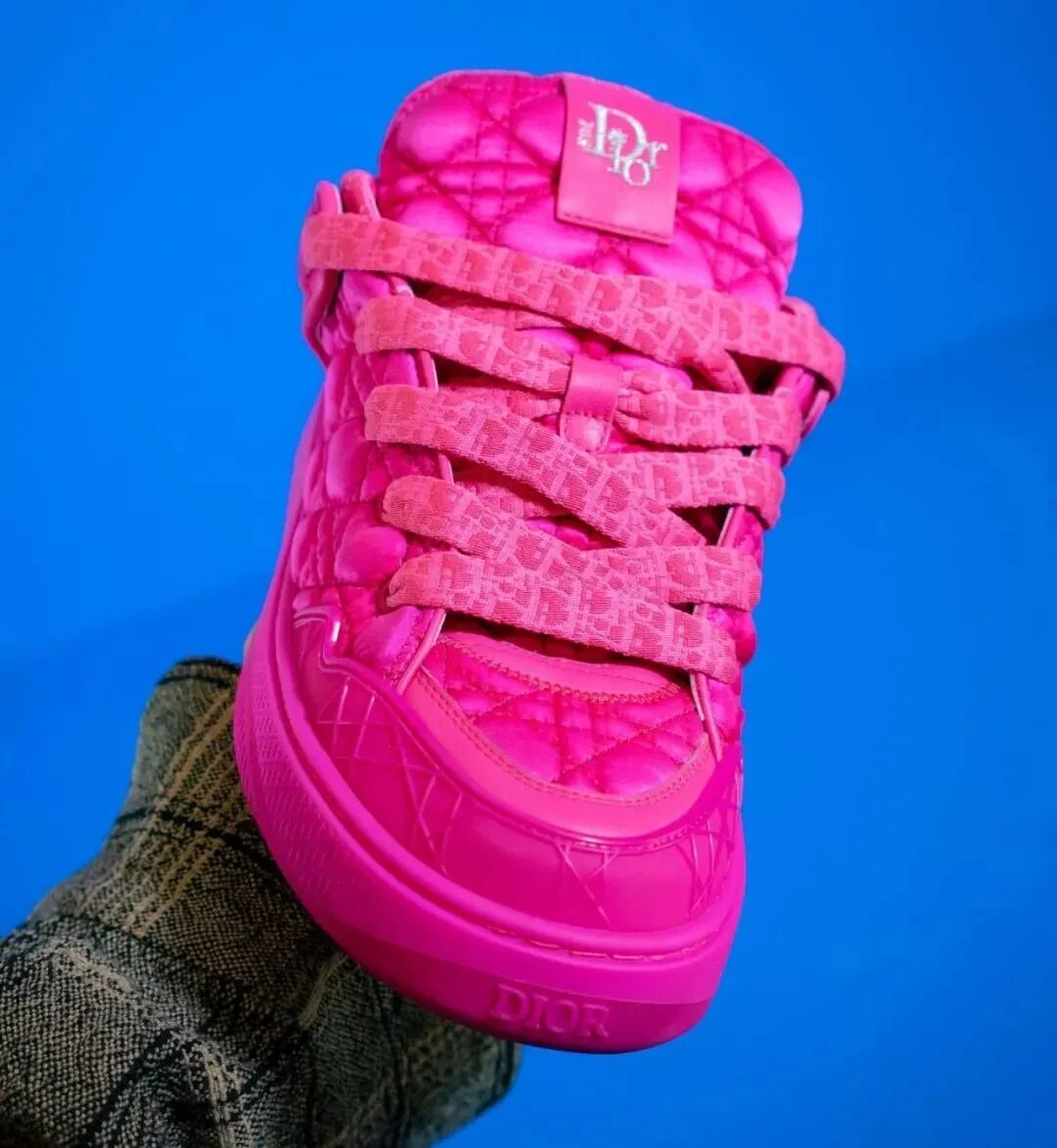 除此之外,Kim Jones和Eli Russell Linnetz还巧妙地在Dior滑板鞋中交换彼此品牌基因,比如引用Lady Dior手袋中标志性的Cannage菱形图案、Dior Monogram,以及ERL较常用的绗缝元素等等,重现90年代外形臃肿的Chunky滑板鞋风潮。